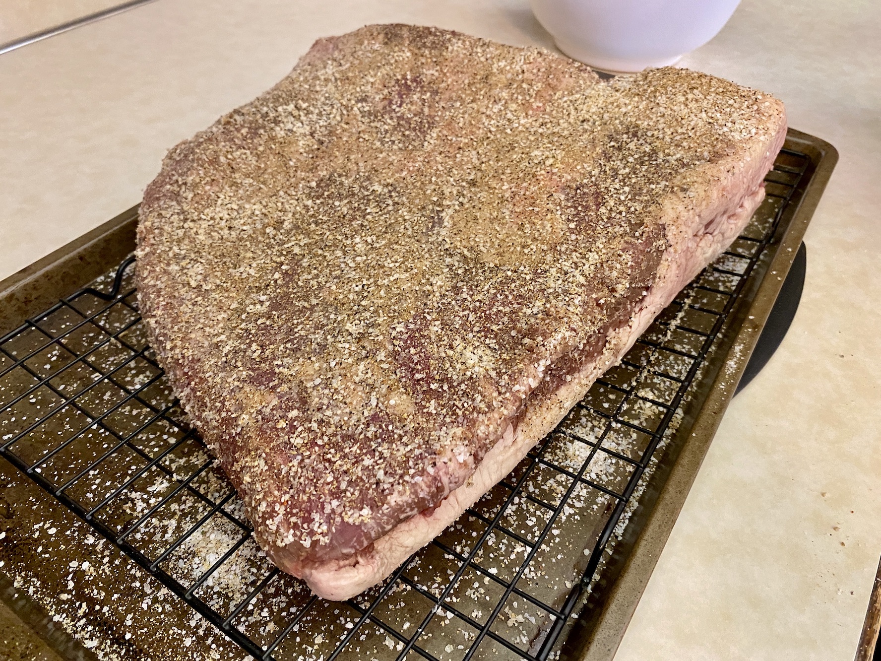 First, make sure you allow yourself PLENTY of time to smoke the brisket and account for more time than necessary so you can enjoy your dinner at a reasonable time instead of eating at 11pm 🙂 I might be speaking from experience…