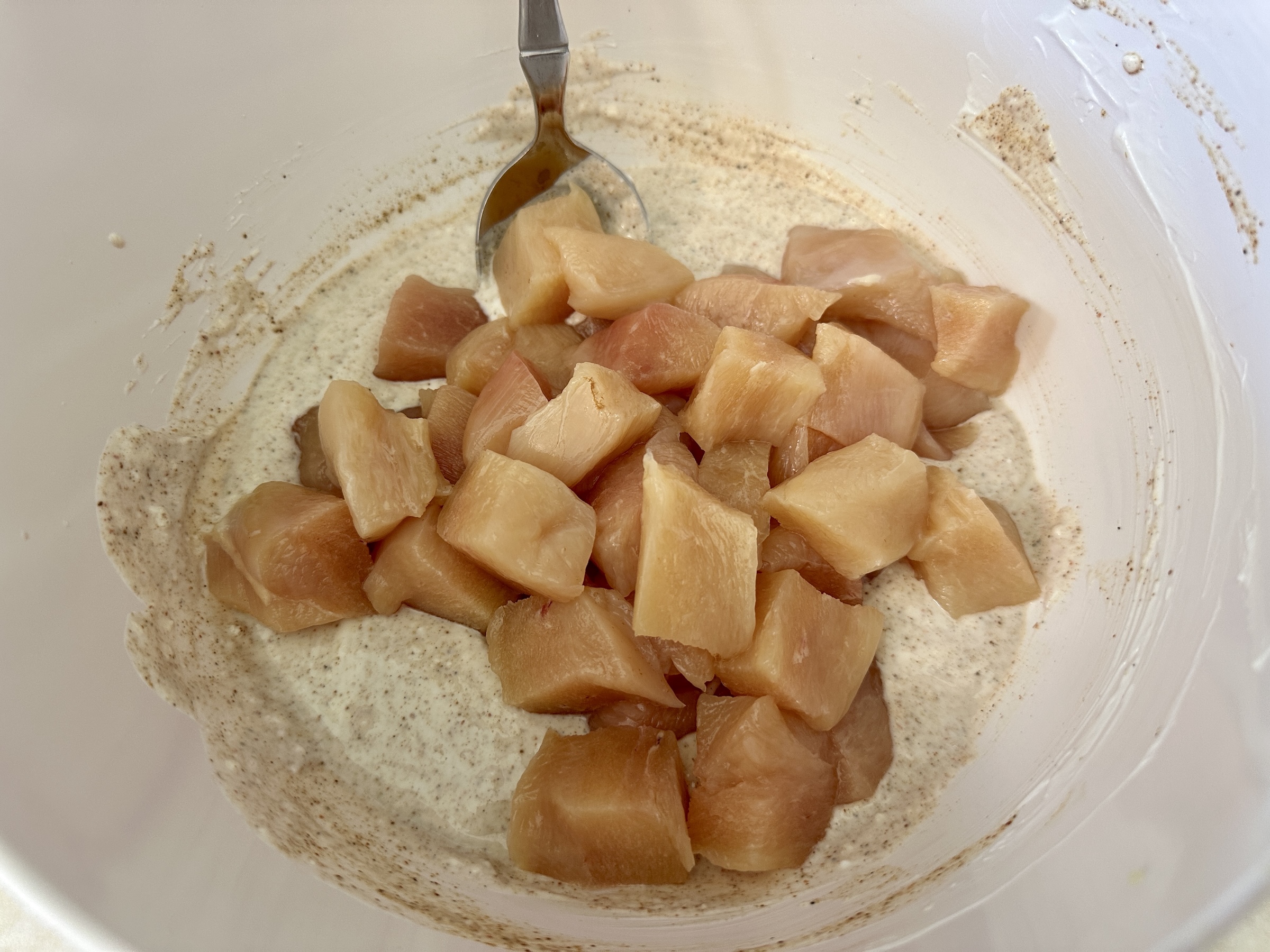 You want to start by marinating the chicken so it can absorb all the vibrant flavors. Combine the yogurt, lemon juice, cumin, garam masala, chili powder, salt, ginger, and garlic in a large mixing bowl. Add the chicken and stir until completely coated. Cover and refrigerate for at least 1 hour or up to overnight.