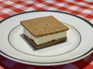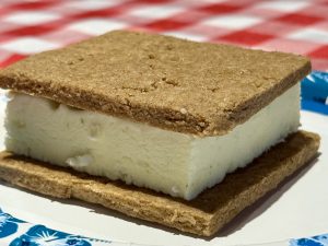 When ready to make the sandwiches, remove the ice cream from the baking pan and slice to match the size of the crackers. Sandwich the ice cream between 2 graham crackers. Serve and enjoy!