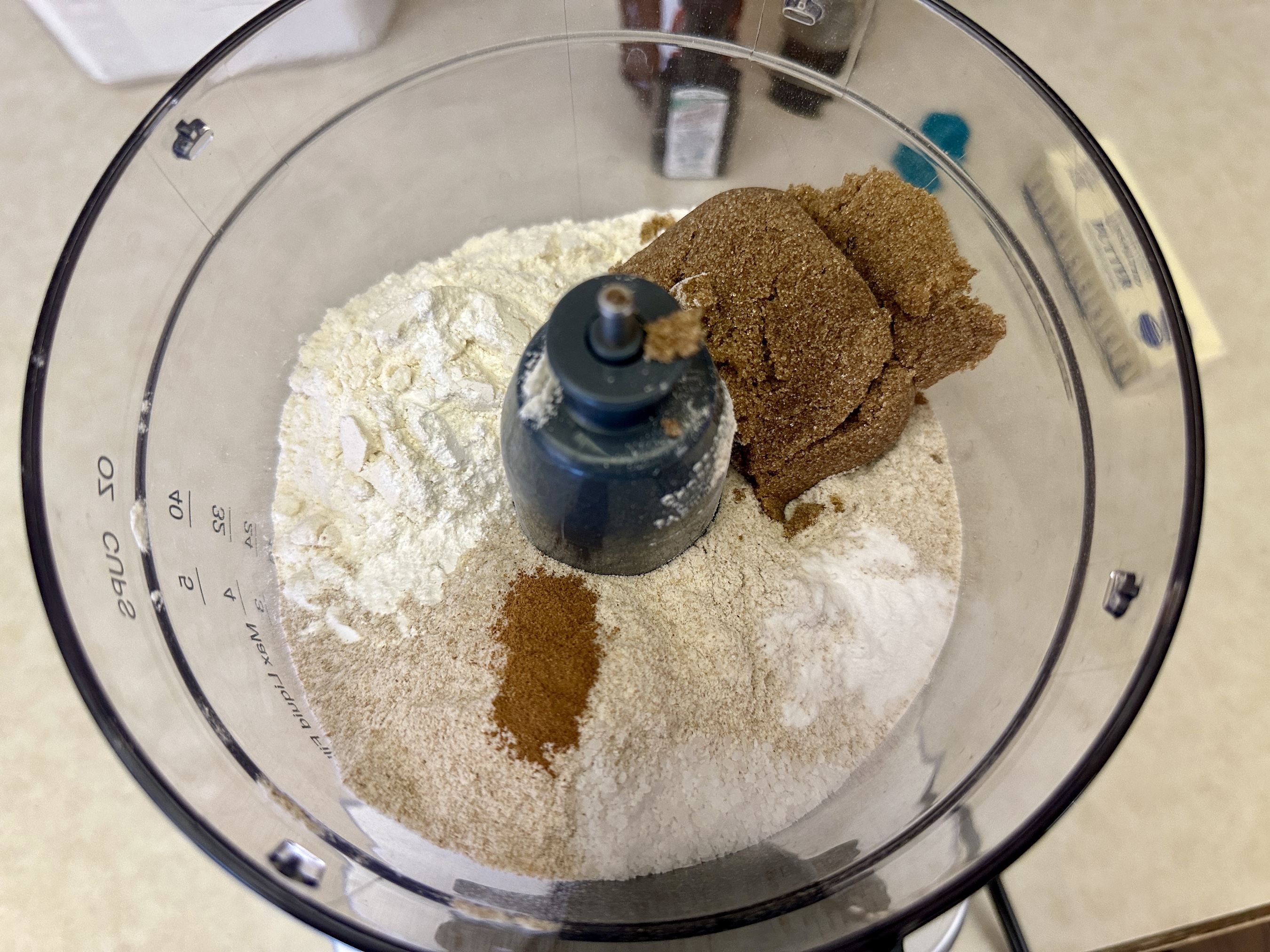 While the ice cream freezes, prepare the graham crackers. Add the whole wheat flour, AP flour, sugar, baking powder, baking soda, salt and cinnamon to the bowl of a food processor. Pulse until combined.