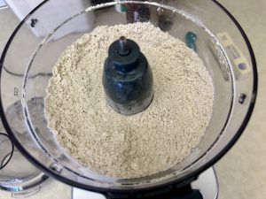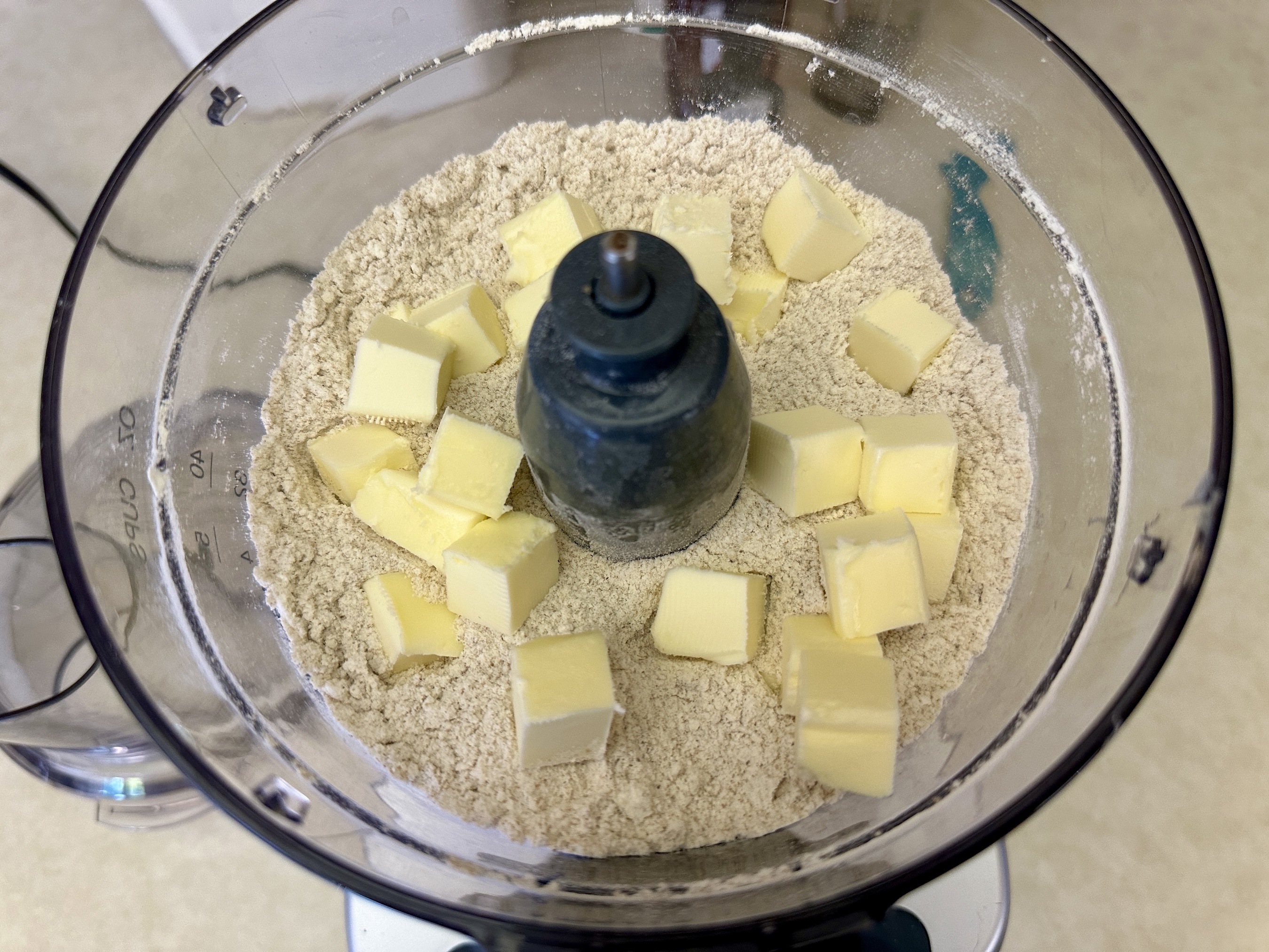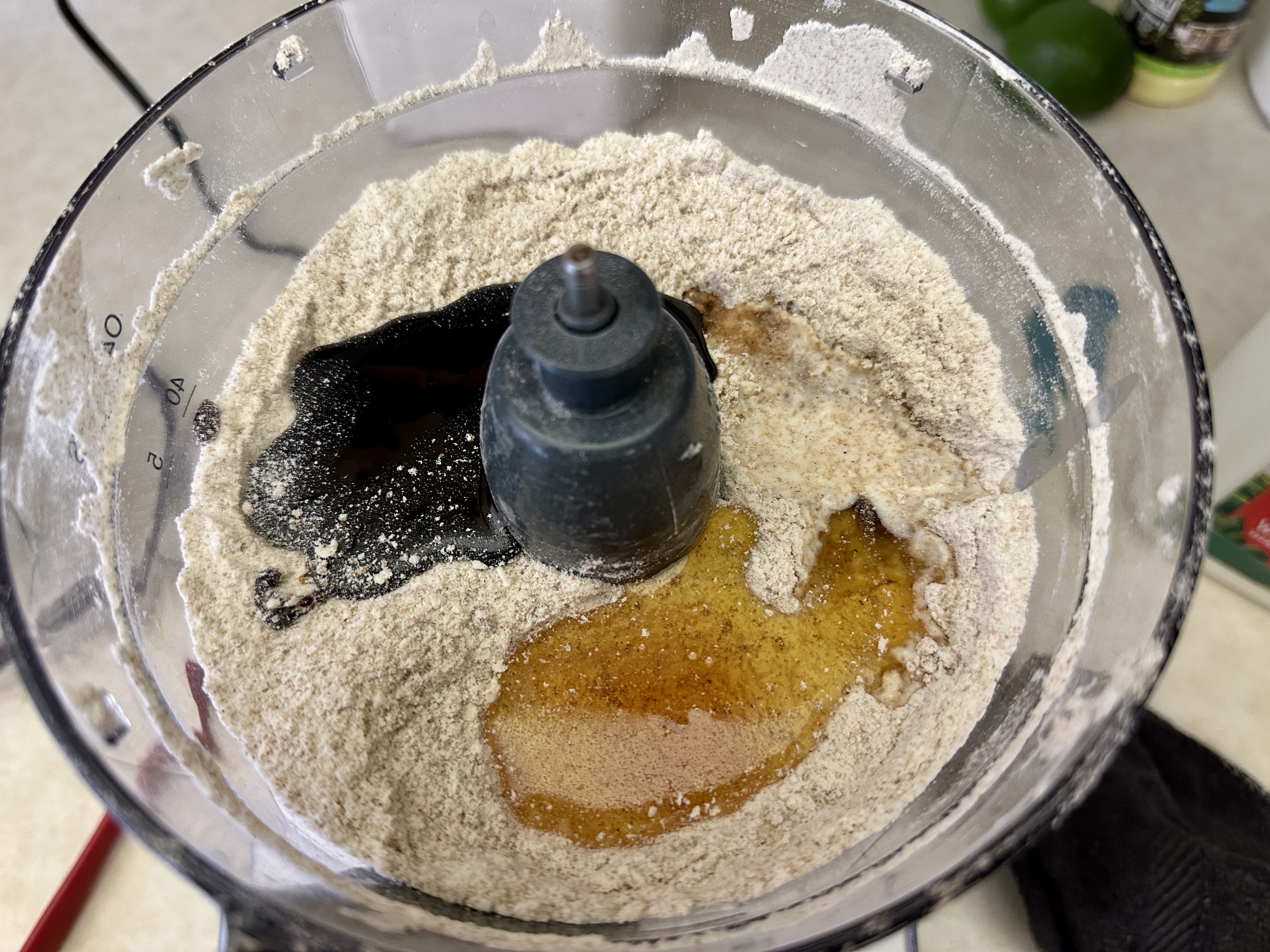 Add the butter and pulse until the mixture resembles cornmeal. Add the honey, molasses, milk, and vanilla. Process until it forms a ball of dough. Add additional milk if too dry and not forming a ball, adding 1 Tbsp at a time.