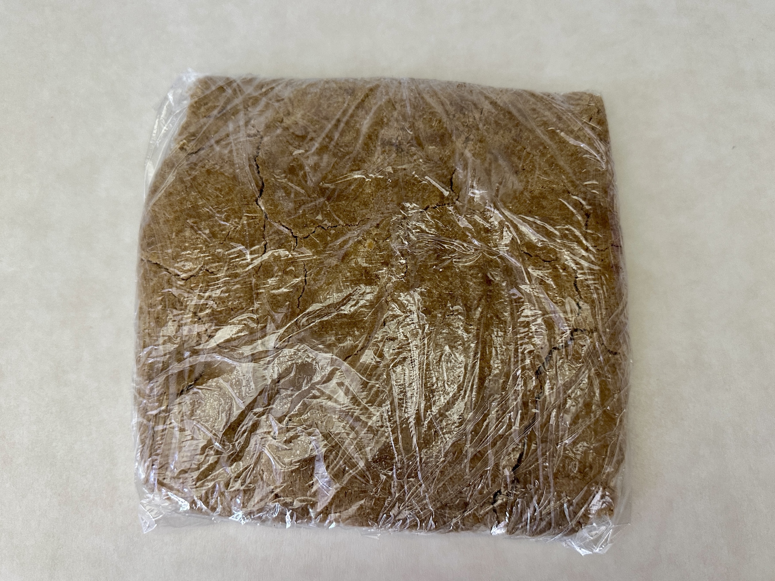 Remove and wrap in a large piece of plastic wrap, pressing into a disk that’s approximately ½-inch thick. Refrigerate for 1 hour.