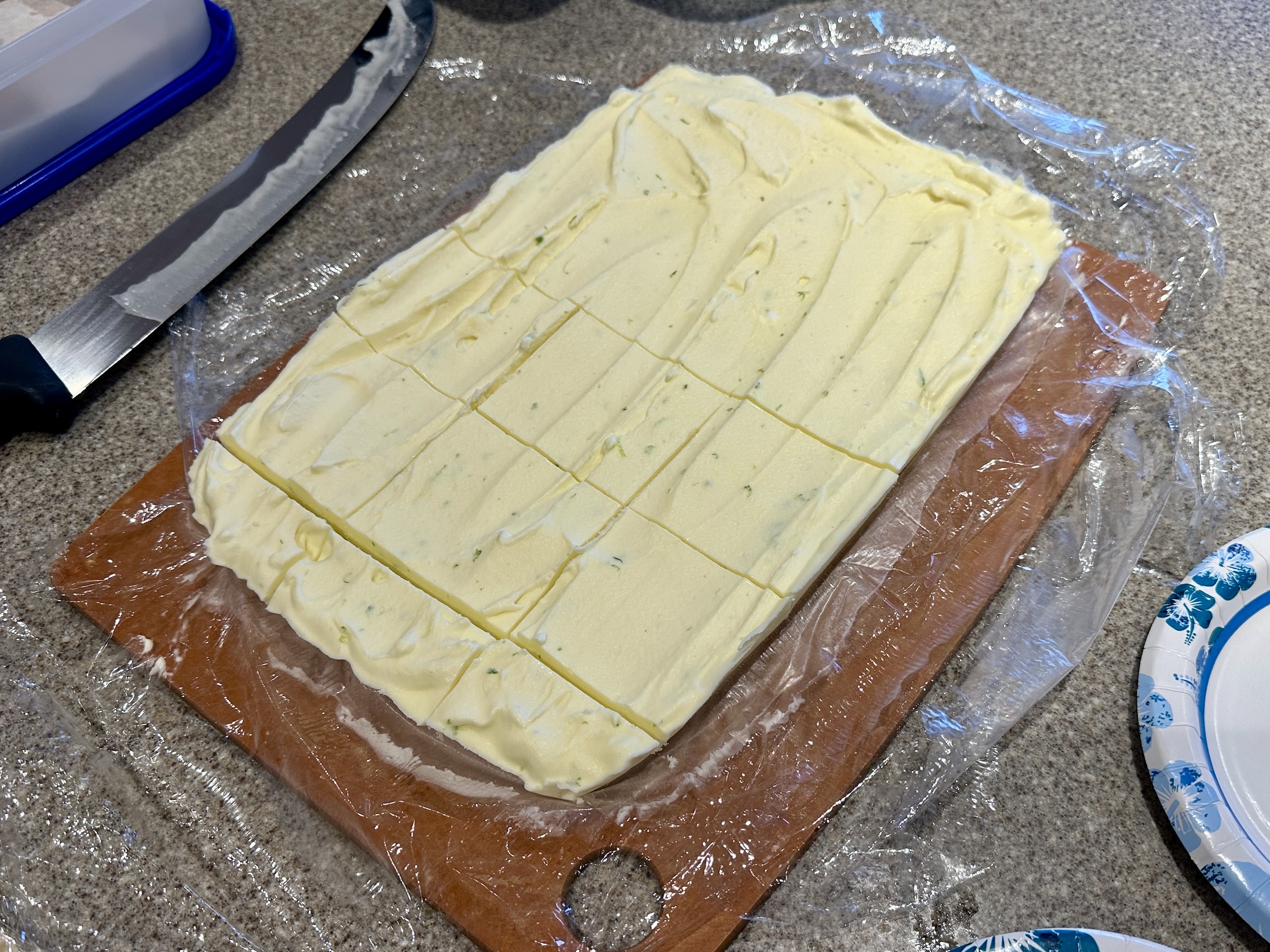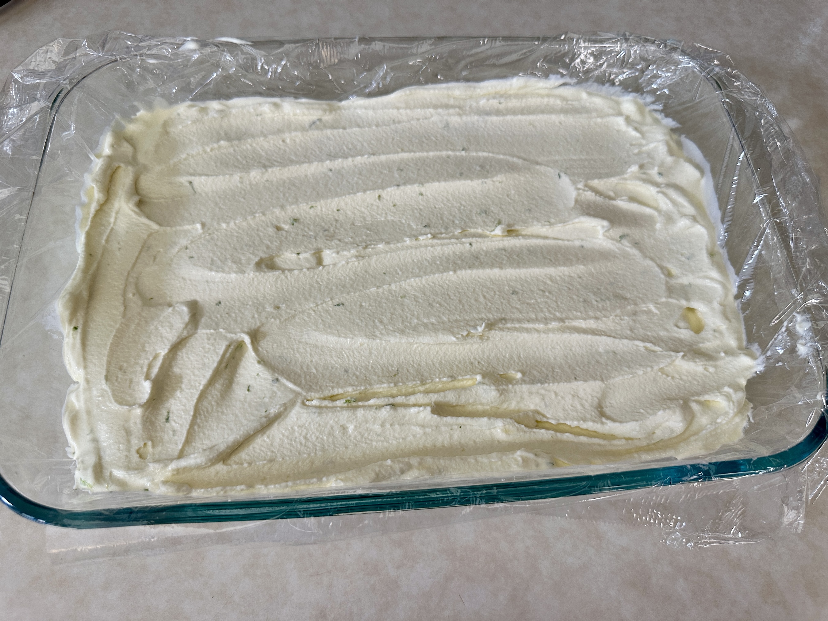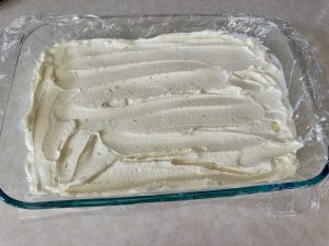 Line a 9×13 baking pan with plastic wrap. Pour the ice cream into the baking pan and smooth into an even layer. Cover and place in the freezer until frozen solid, typically overnight.