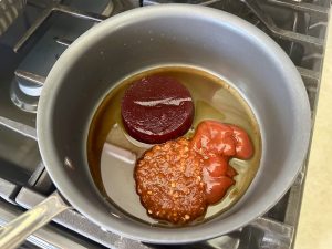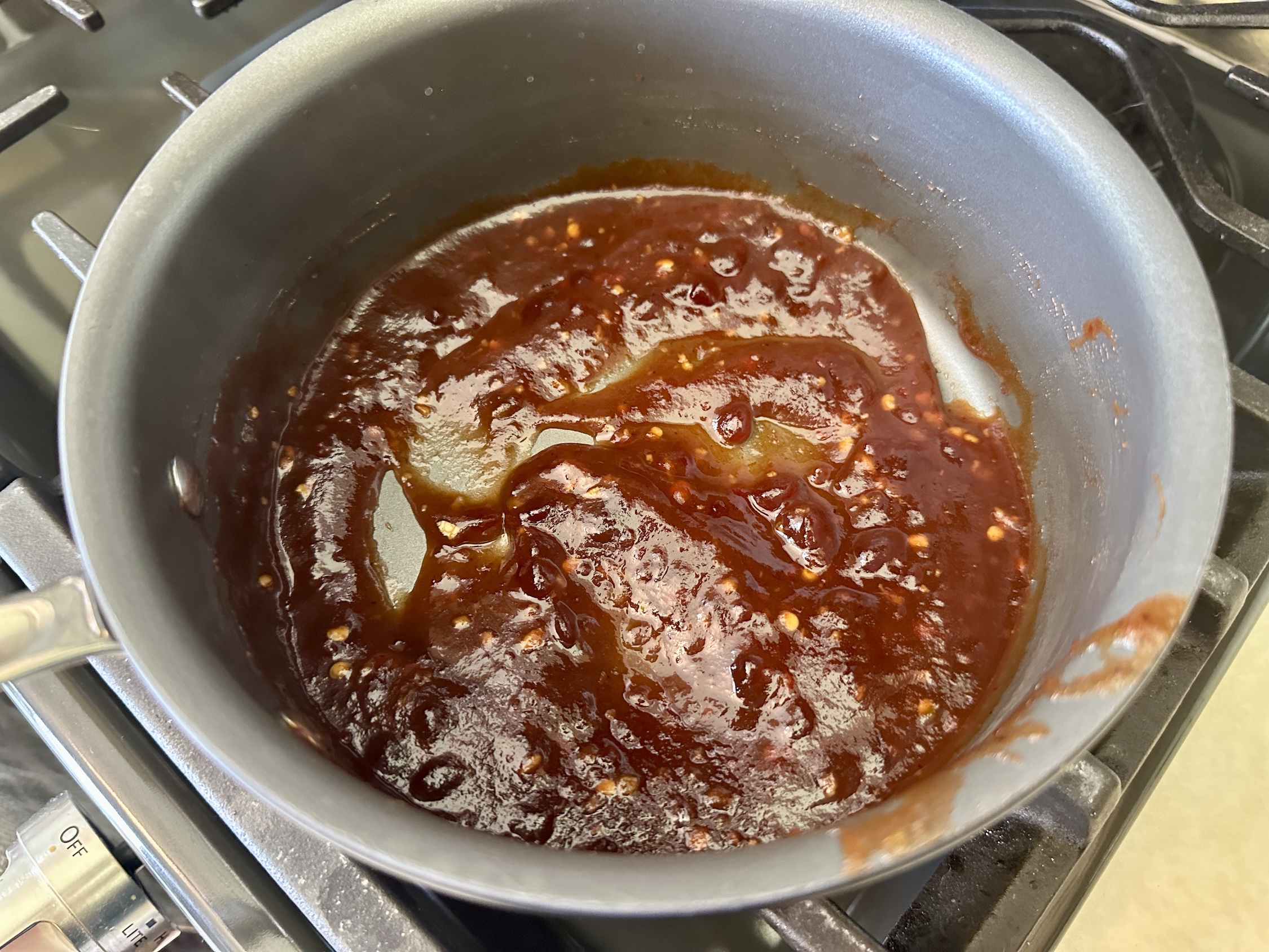 When cooked through, remove from the smoker and let rest for about 10 minutes. During this time, prepare the sauce. Add the cranberry, ketchup, garlic chili sauce, rice vinegar, honey, and Worcestershire to a small saucepan and heat over medium-low heat. Whisk to combine and continue to cook until warmed through.