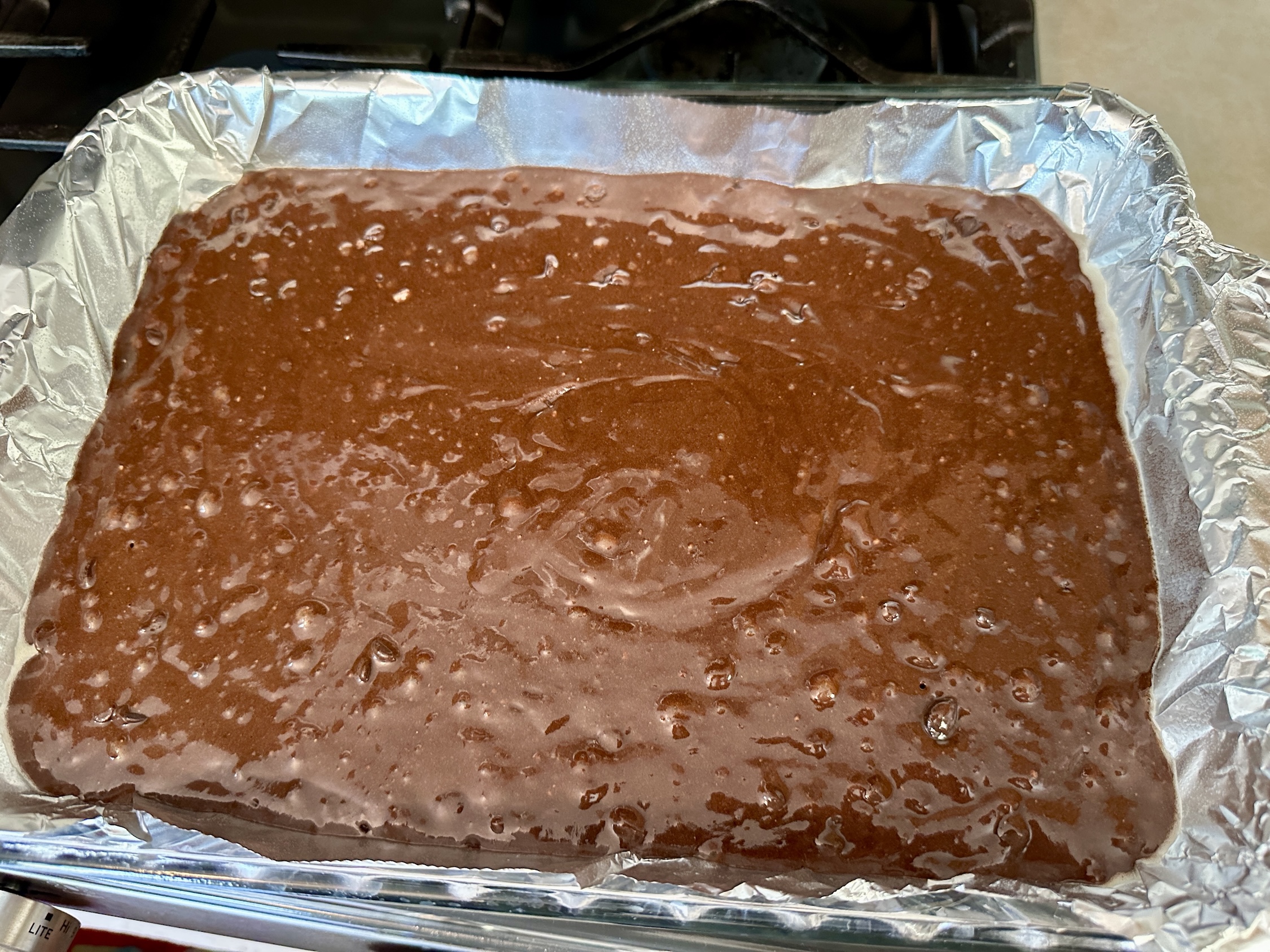 Start by preheating the oven to 350 degrees F. Line a 9×13 baking dish with aluminum foil and spray with cooking spray.