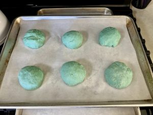 Optional – combine 1 egg with 1 tsp water in a small bowl. Brush over the top of each bun before baking. The egg wash *might* make the buns have a slightly brown top that’s crisp from the egg wash. If you want your buns to be truly “blue”, it’s recommended to skip this step.