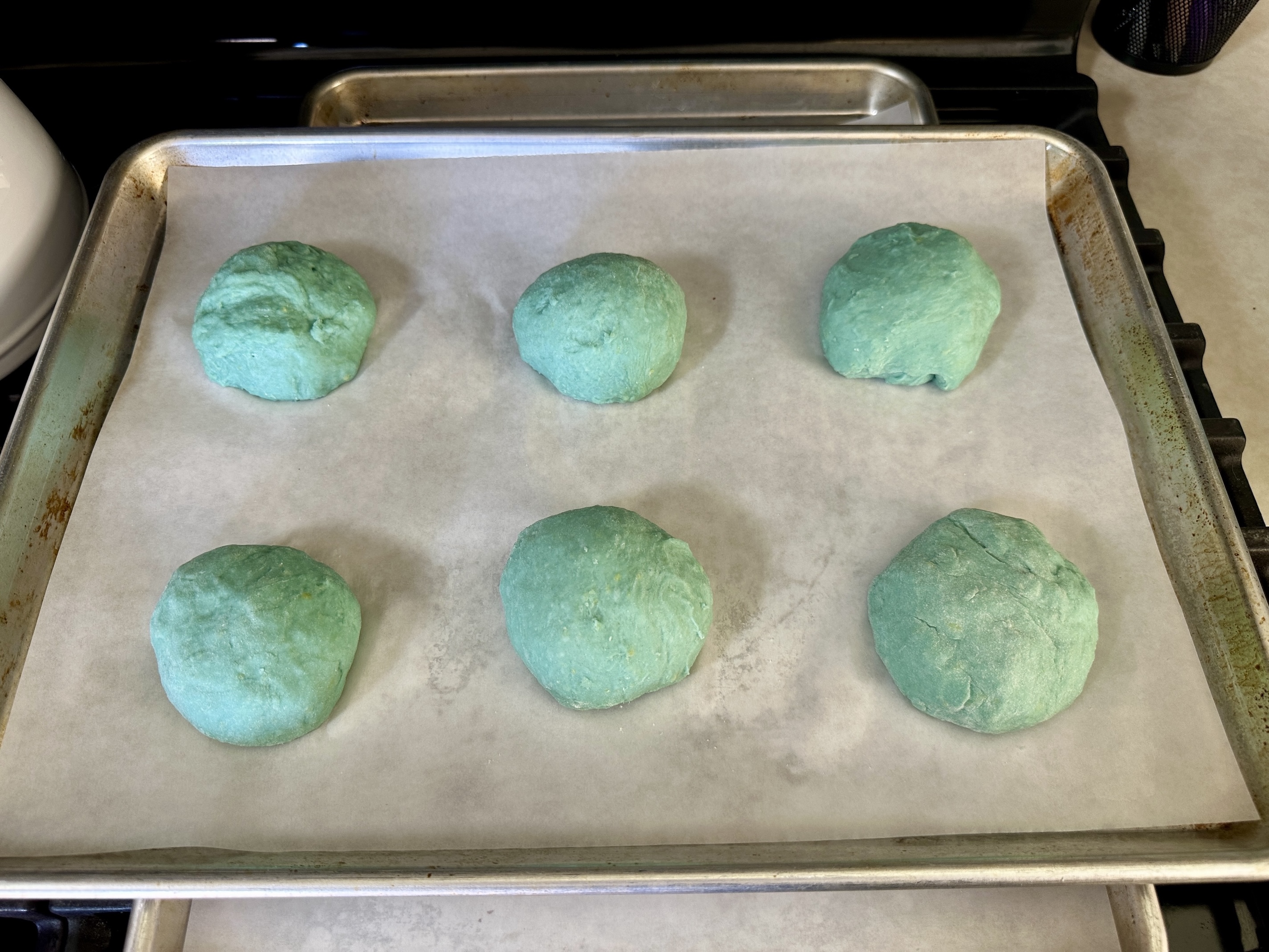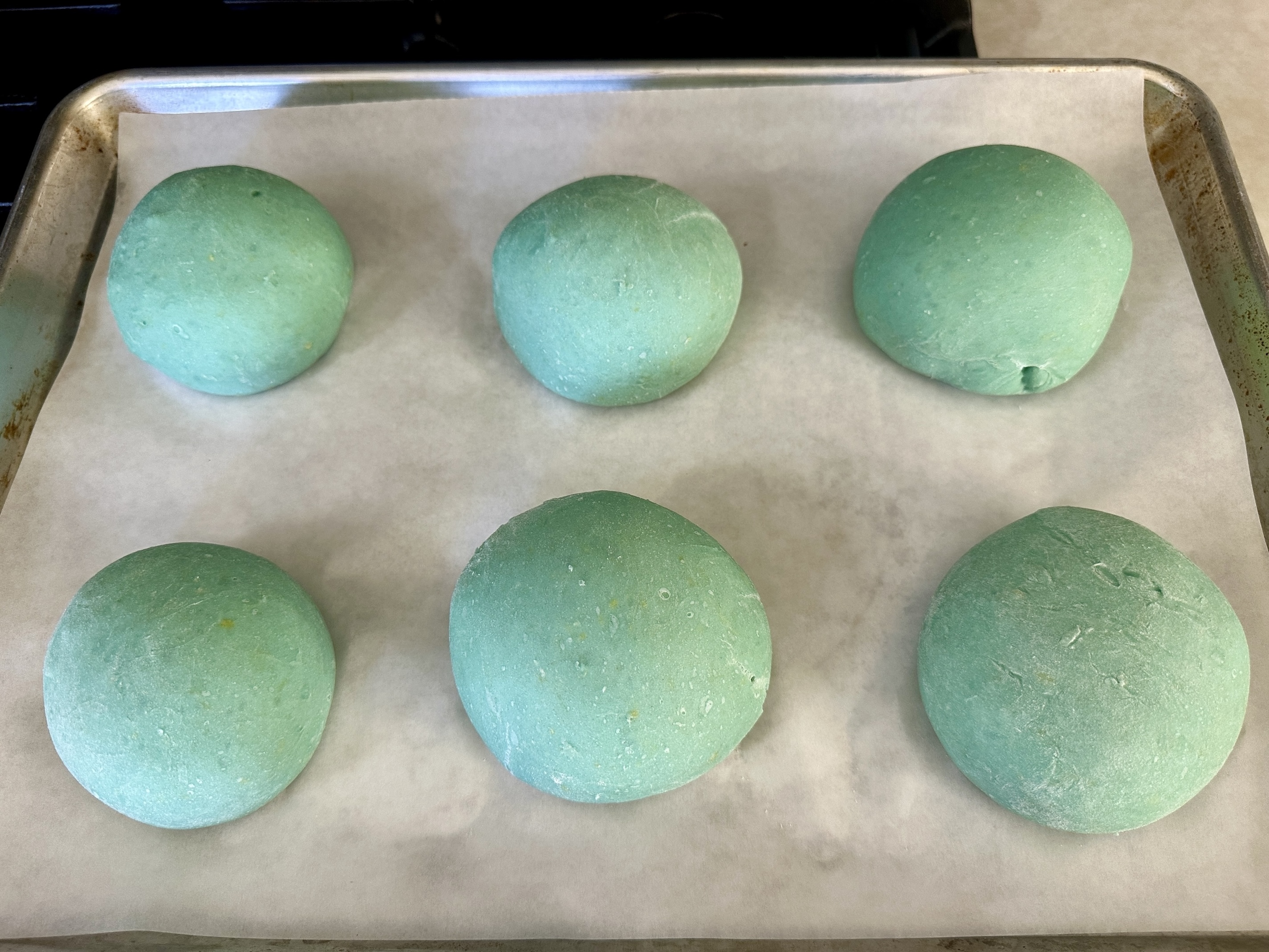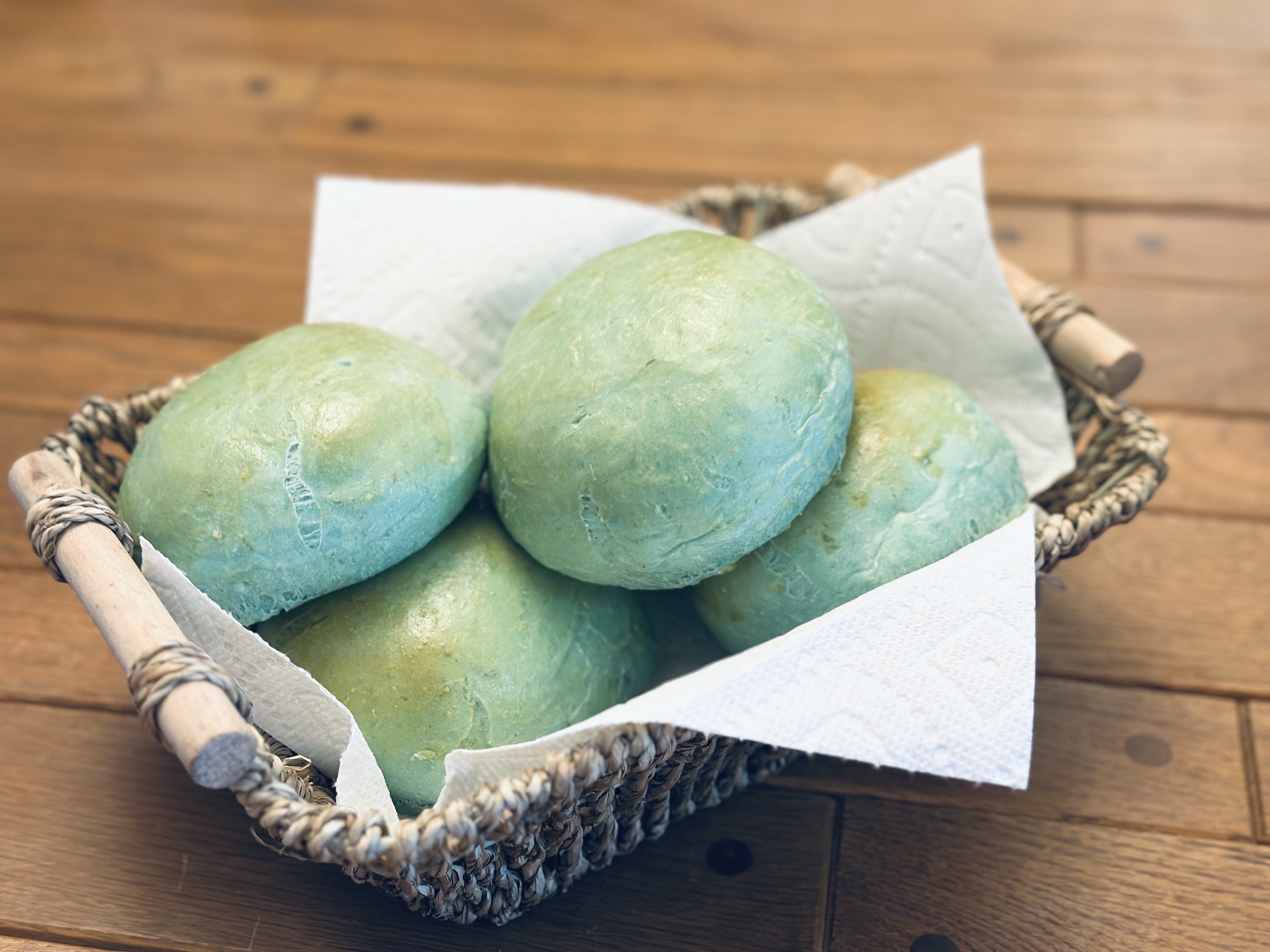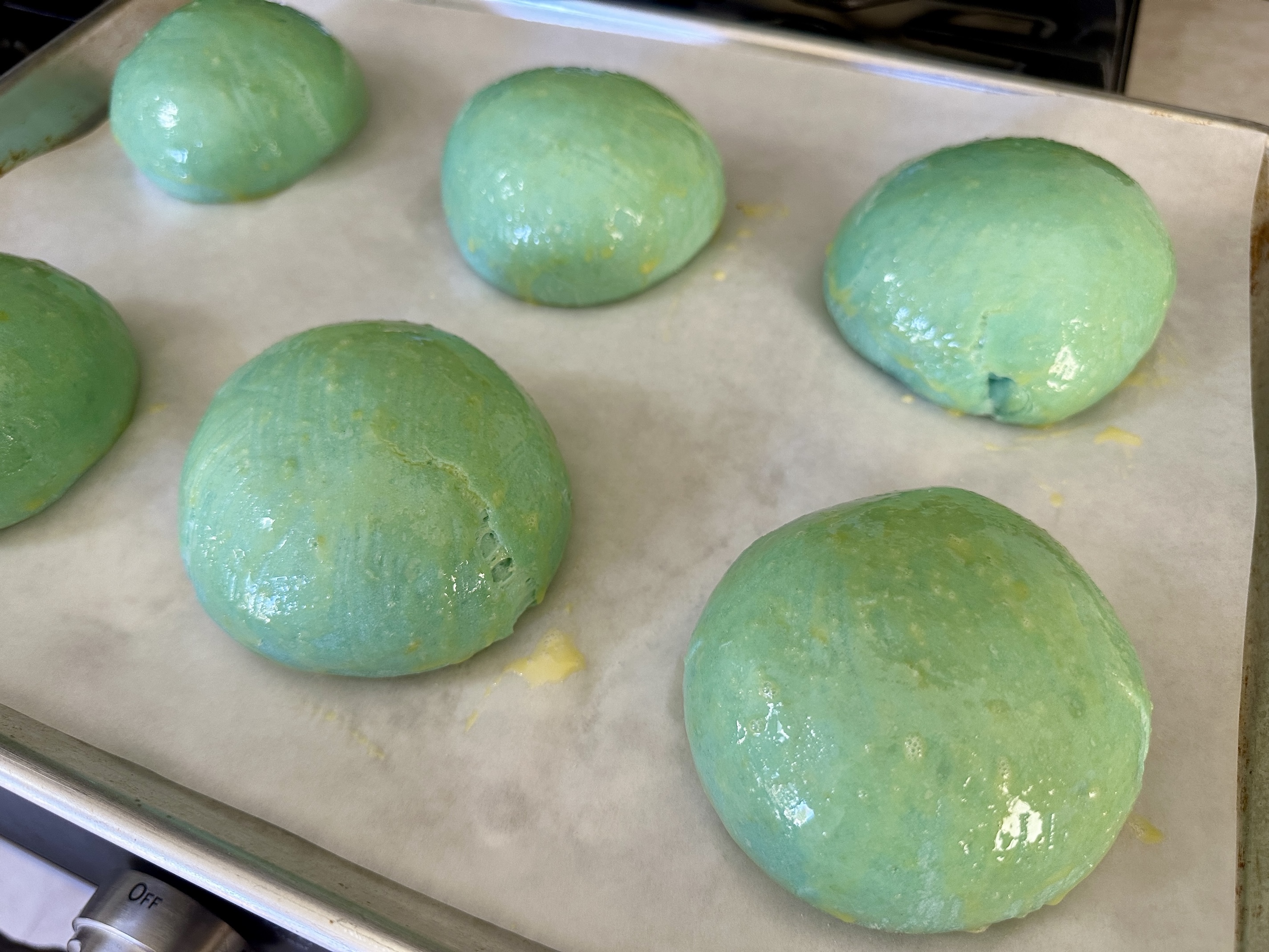 Optional – combine 1 egg with 1 tsp water in a small bowl. Brush over the top of each bun before baking. The egg wash *might* make the buns have a slightly brown top that’s crisp from the egg wash. If you want your buns to be truly “blue”, it’s recommended to skip this step.