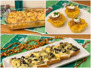 Football season is here, and you know what that means—game day snacks that are just as exciting as the plays on the field! Whether you’re cheering from the couch, hosting a tailgate, or gathering friends for a Sunday showdown, the right snacks can make the game unforgettable. Kick things off with Loaded Mac & Cheese Cups—gooey, cheesy bites packed with all your favorite toppings that are perfect for passing around. Pair them with Cheesy Olive Bread, a savory, bread loaf that’s bursting with flavor and makes a perfect side for dipping. And for a little extra comfort, serve up Homestyle Sour Cream & Onion Potatoes, creamy, cheesy, and perfectly seasoned—like a warm hug for your taste buds. These recipes are a touchdown for your taste buds and a must-have for any football feast!