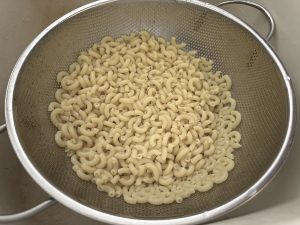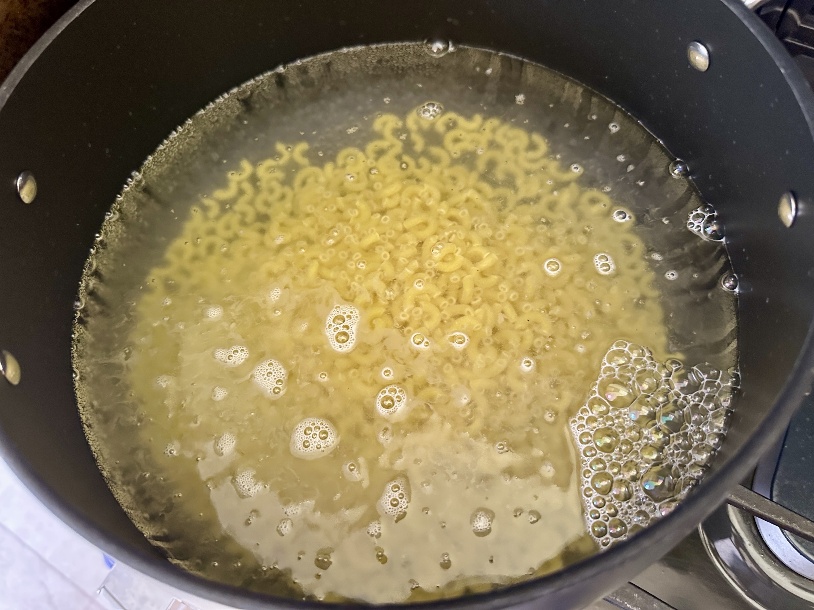 Cook the pasta: Bring a large pot of water to a boil and cook the elbow macaroni according to package directions. Drain and set aside.