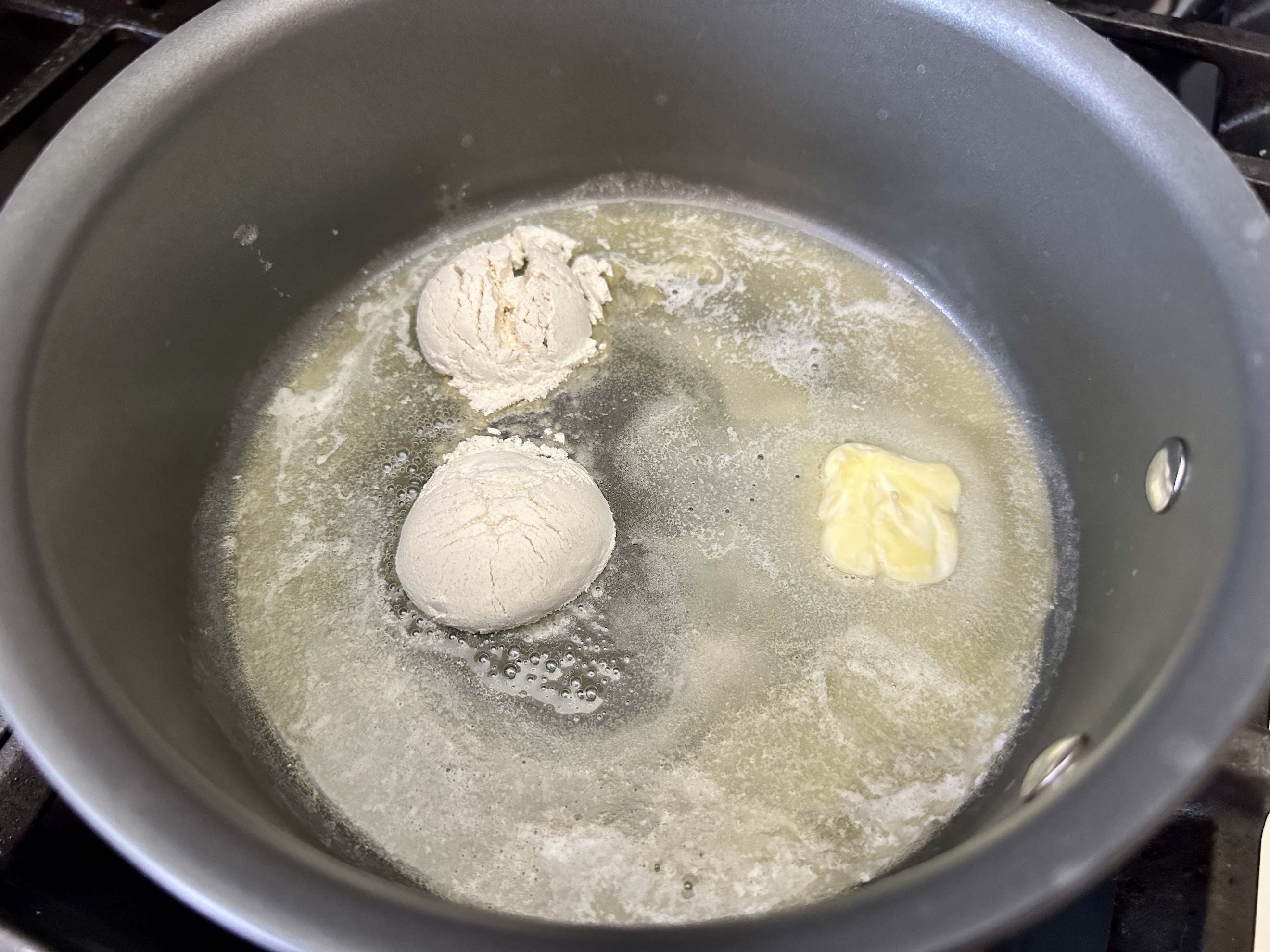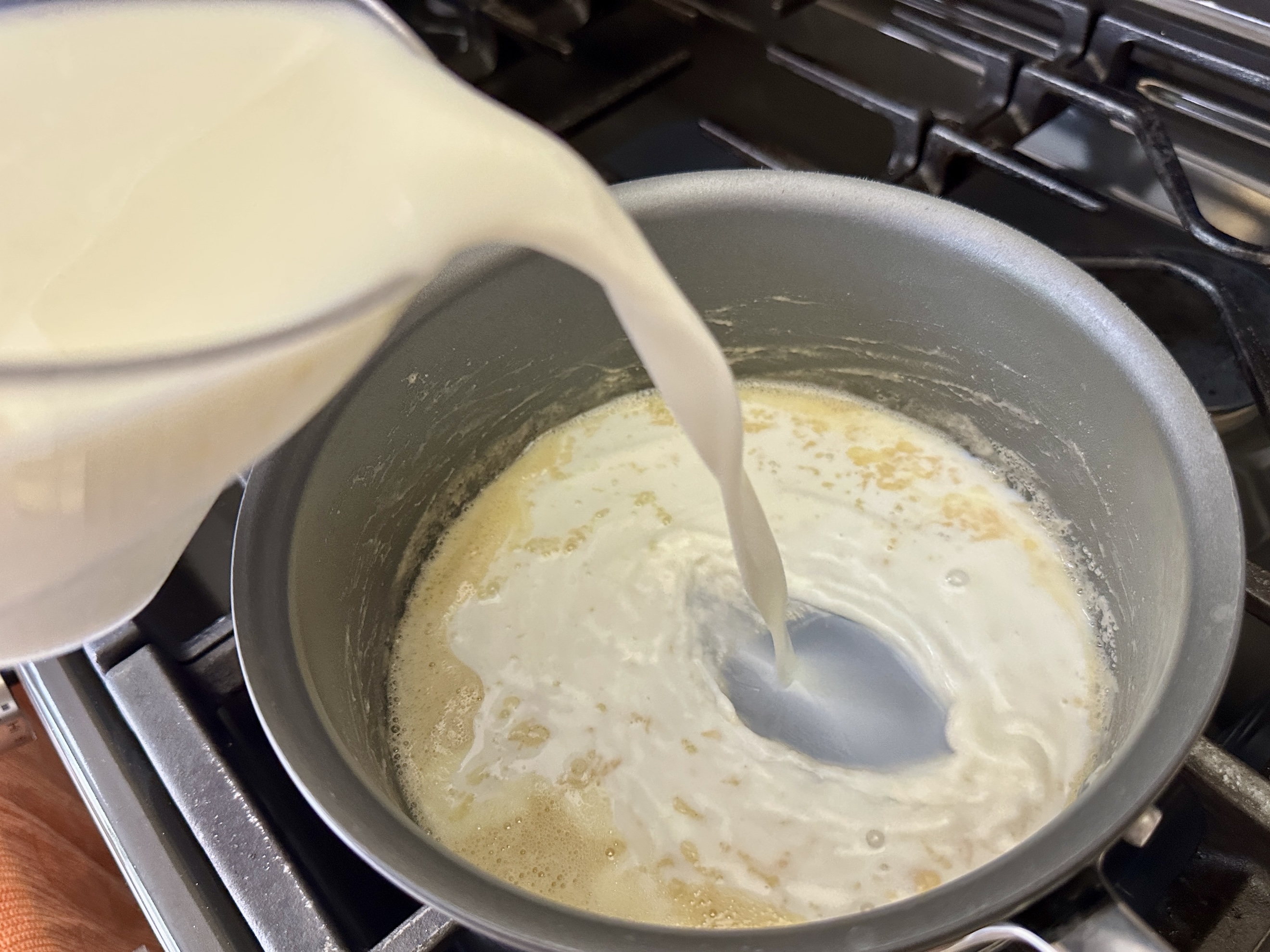 Make the cheese sauce: In the same pot, melt the butter over medium heat. Whisk in the flour and cook for 1–2 minutes until golden and fragrant. Gradually pour in the milk, whisking constantly, and continue to heat for 3–4 minutes until the mixture begins to thicken.