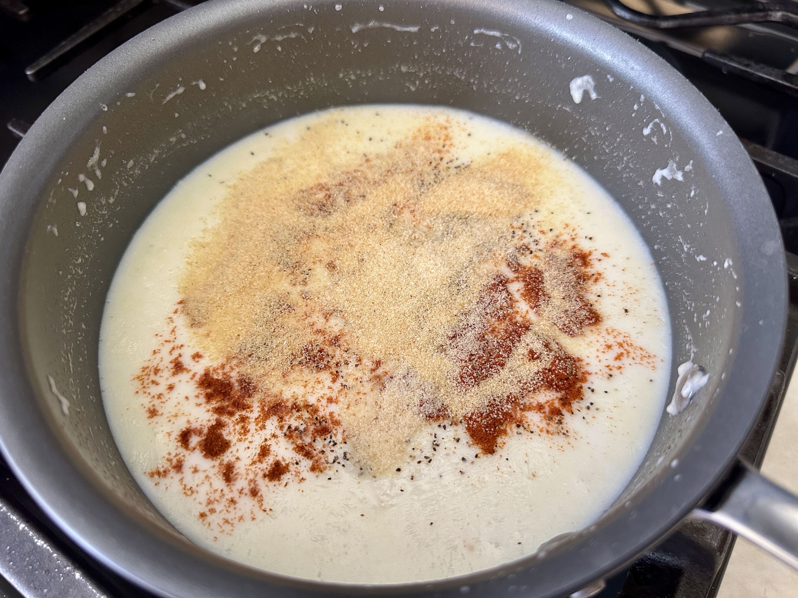 Season the sauce: Stir in the garlic powder, onion powder, paprika, salt, and pepper. Mix well to combine.