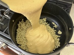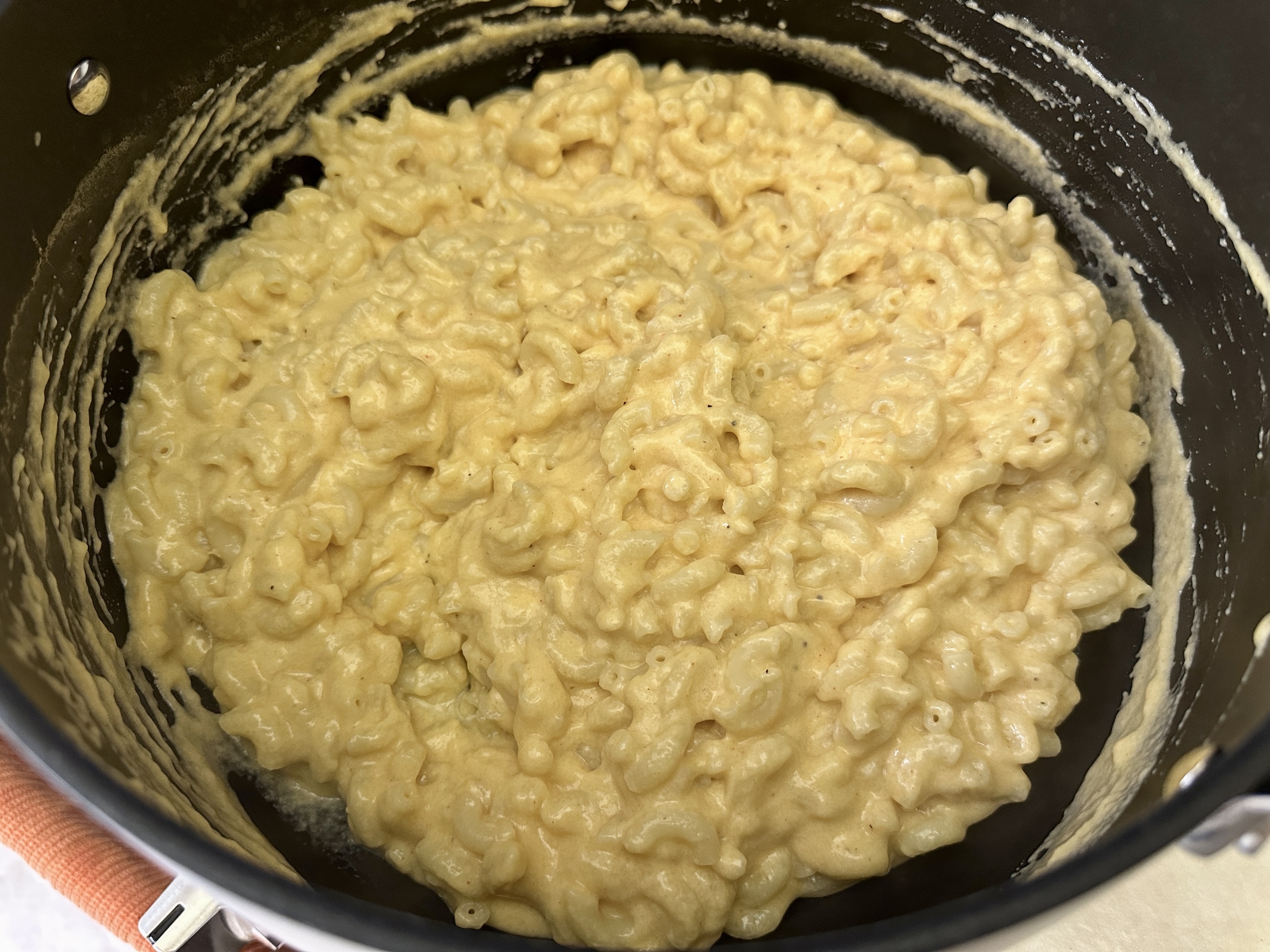 Combine with pasta: Add the cooked macaroni to the pot and stir until every noodle is coated in cheesy goodness. Remove from heat.