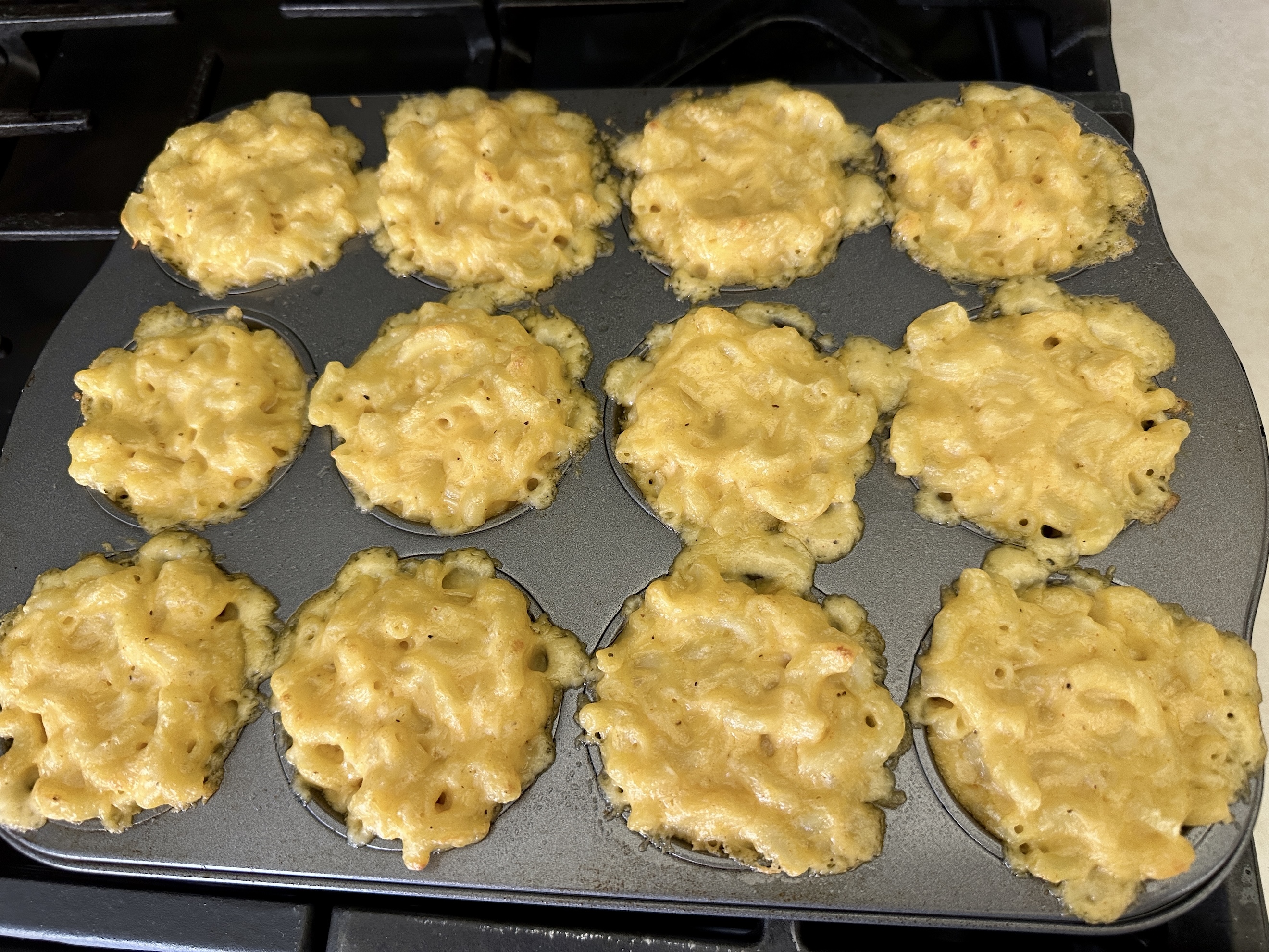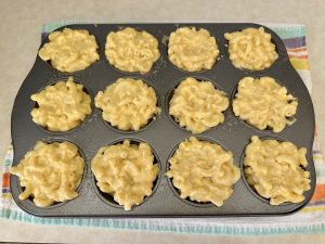 Fill the muffin tin: Spoon the mac and cheese into each well, pressing down slightly to fill completely. If you have any leftover mac and cheese, you can save it for later.