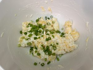 Add the flavor boosters: Stir in the shredded Monterey Jack (or Colby Jack) cheese and sliced green onions until evenly combined.