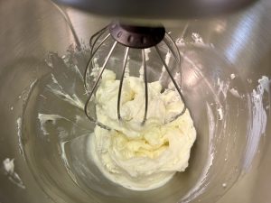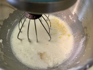 Add the vanilla extract, rose water, and lemon zest and whisk again, until well combined. Be careful when adding the rose water. You can always give a little taste and add more but you can’t take away and it is quite strong. A little goes a long way. You don’t want the flavor to be too overpowering.