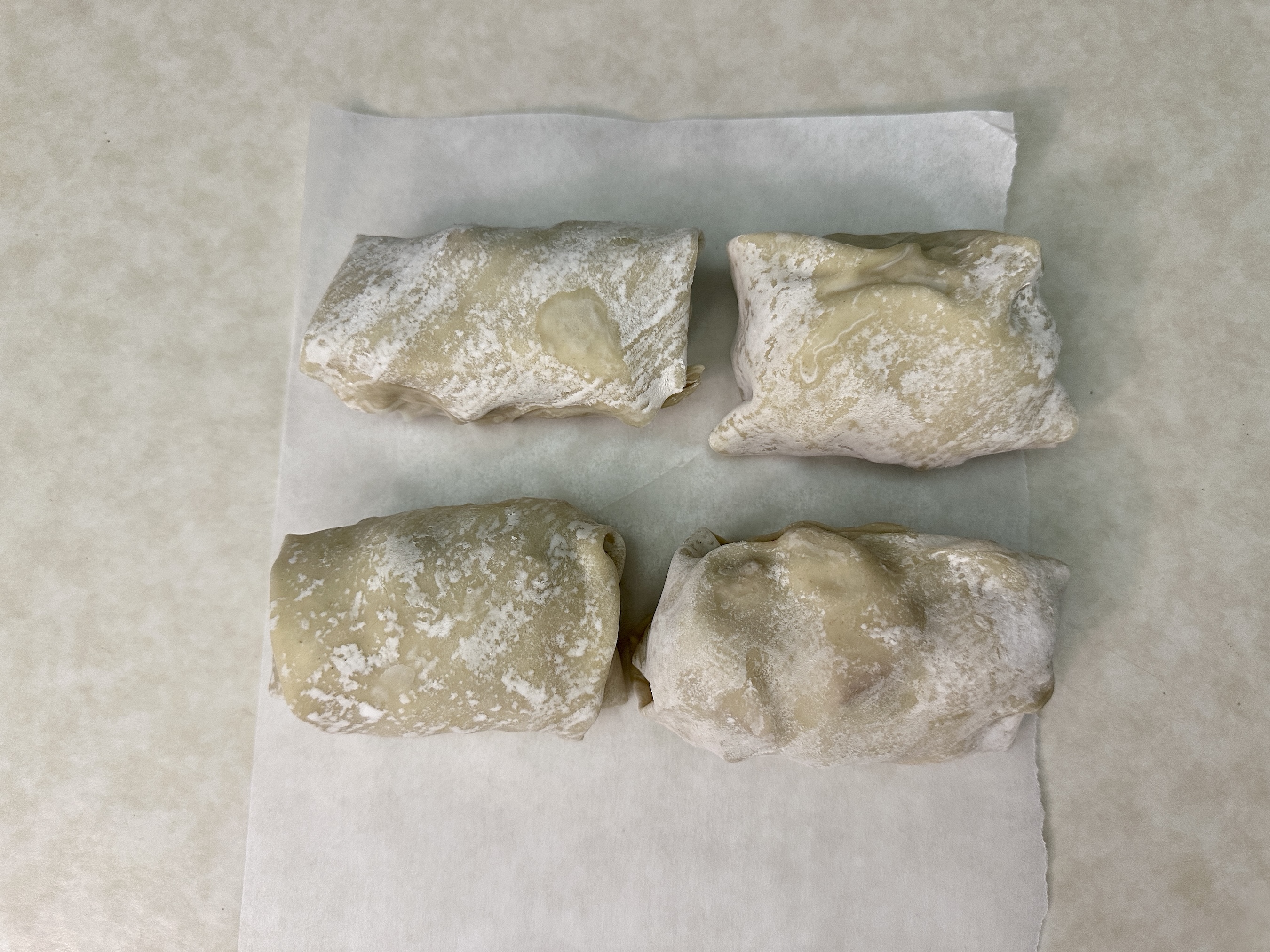 Set aside and repeat until all egg rolls have been wrapped.