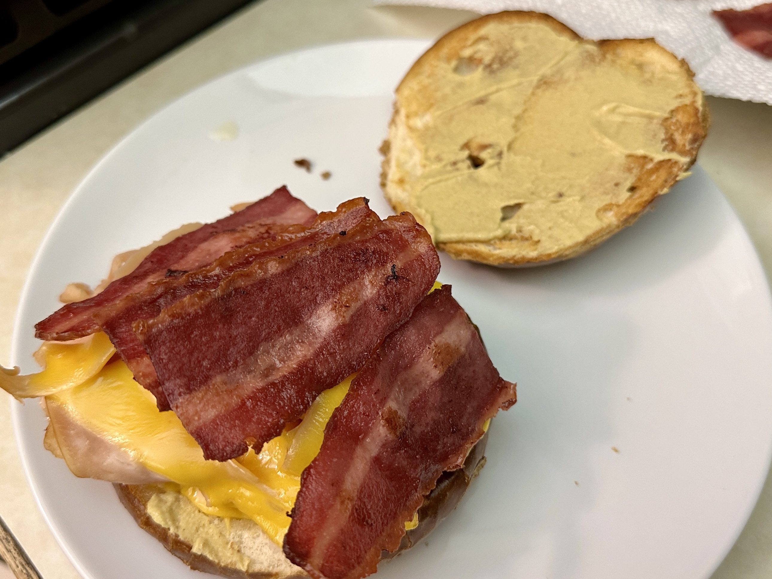 Transfer a “pile” of the turkey to each bun. Top with bacon (break apart if needed) then place the other half of the bun on top.