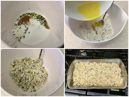 Now it’s time to make the streusel topping. In a small bowl, mix together the flour, sugar, cinnamon, salt, jimmies, melted butter, and a touch of vanilla extract until the mixture becomes crumbly and colorful. Sprinkle it evenly over the top of the batter, creating that signature sweet, crunchy layer that makes every slice irresistible. Bake the bread for 55–60 minutes, or until the center is set and a toothpick inserted comes out clean. Once it’s done, let it rest in the pan for about 15 minutes before transferring to a cooling rack.