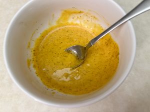 While that comes together, whisk up a quick sauce by mixing French dressing with a touch of lime juice, sugar, and a bit more Creole seasoning—this will be drizzled over the baked cups and served on the side for dipping.