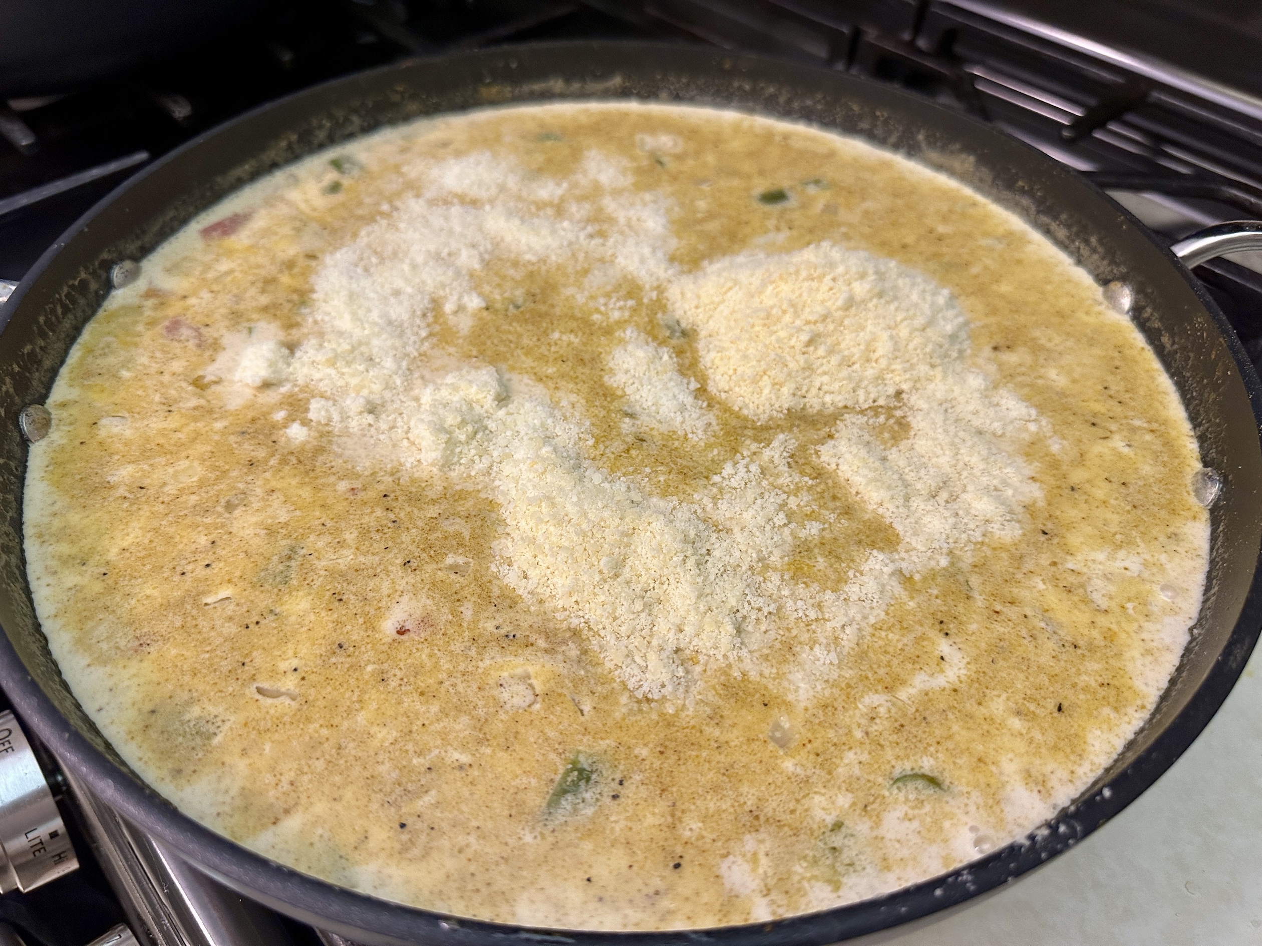 Now comes the indulgent part: pour in the heavy cream and chicken stock, then season the sauce with extra Cajun seasoning, a touch of cayenne, and salt and pepper to taste. Sprinkle in Parmesan cheese and stir until the sauce becomes smooth, creamy, and irresistible. If it feels a little thin, you can whisk in a small mixture of cornstarch and water to thicken it up.