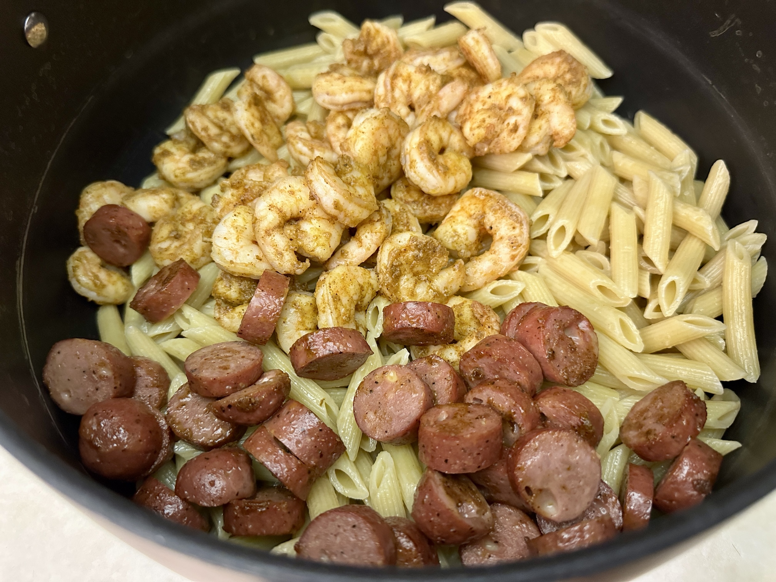 Finally, fold in the cooked pasta, shrimp, and sausage, letting everything simmer together for a few minutes so the pasta absorbs some of the sauce and the flavors really come alive. Once it’s all coated in that luscious, cheesy, spicy sauce, finish with a sprinkle of fresh chopped parsley.