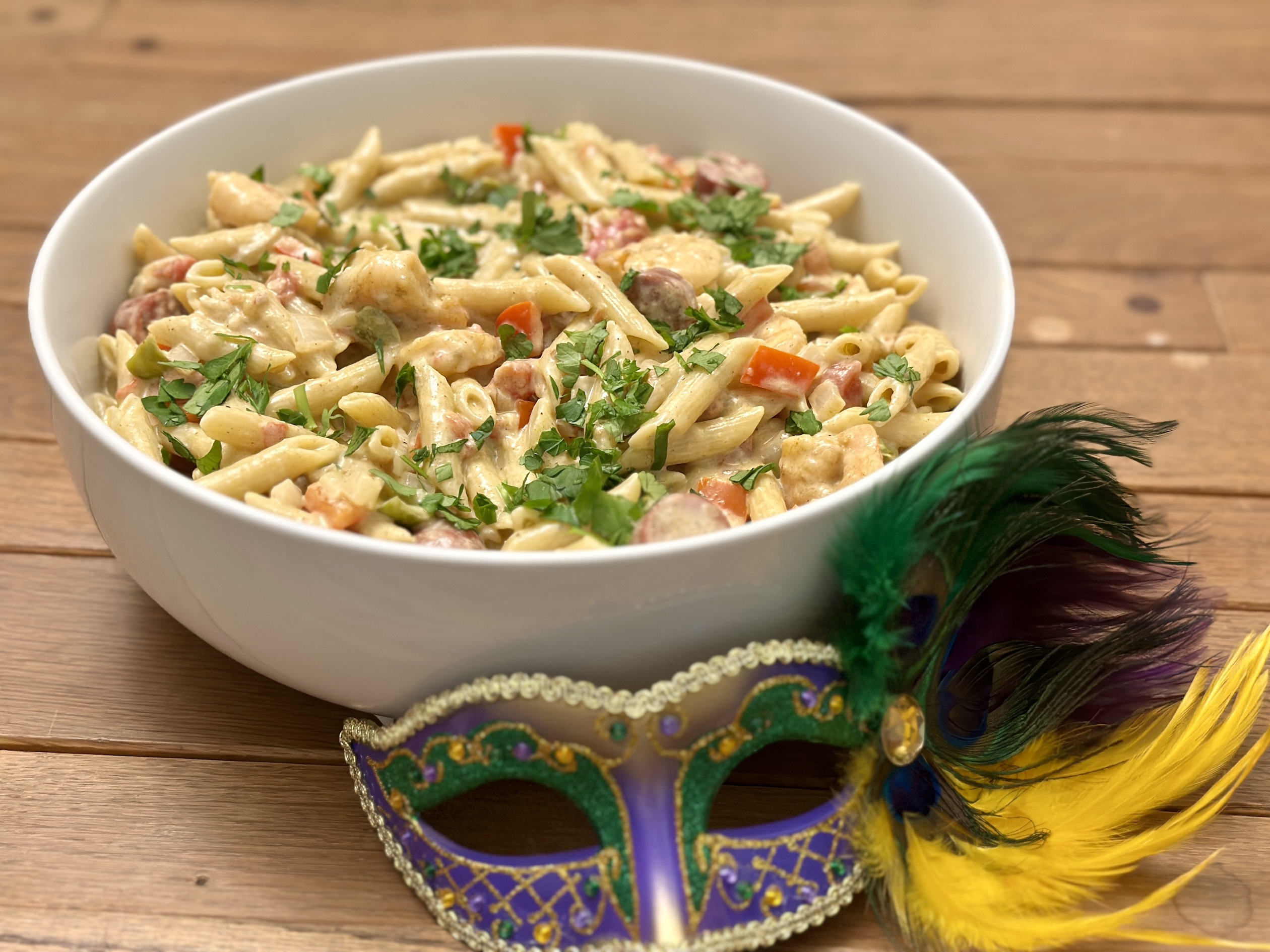 After everyone has enjoyed the crispy, creamy bite of your Creole Cream Cheese Wonton Cups, it’s time to bring out a main course that really captures the bold flavors of Mardi Gras. The Pappadeaux Mardi Gras Pasta is rich, creamy, and loaded with tender shrimp, smoky Andouille sausage, and a colorful mix of bell peppers and onions—all tossed in a luscious Parmesan-cream sauce with just the right amount of Cajun spice. Cooking it is easier than it looks and you’ll have a showstopper dish that keeps the Mardi Gras celebration going, pairing beautifully with your appetizer while adding a hearty, comforting centerpiece to the table.