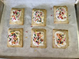 Once cooled, place the white chocolate in a microwave-safe bowl and heat in 30-second increments, stirring between each, until melted and smooth. Spread the melted white chocolate over the top of each pastry, using as much or as little as you’d like.
