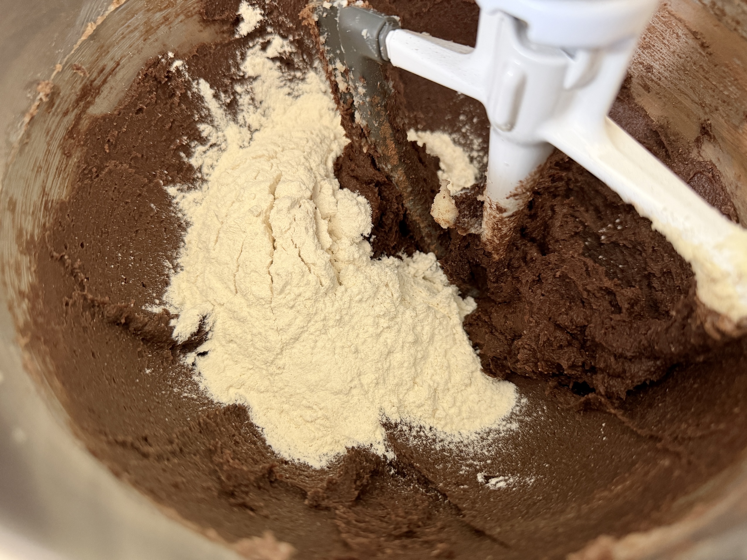In a separate bowl, whisk together the flour, salt, baking soda, and baking powder. Gradually add the dry ingredients to the mixer on low speed, mixing just until everything comes together into a soft dough.