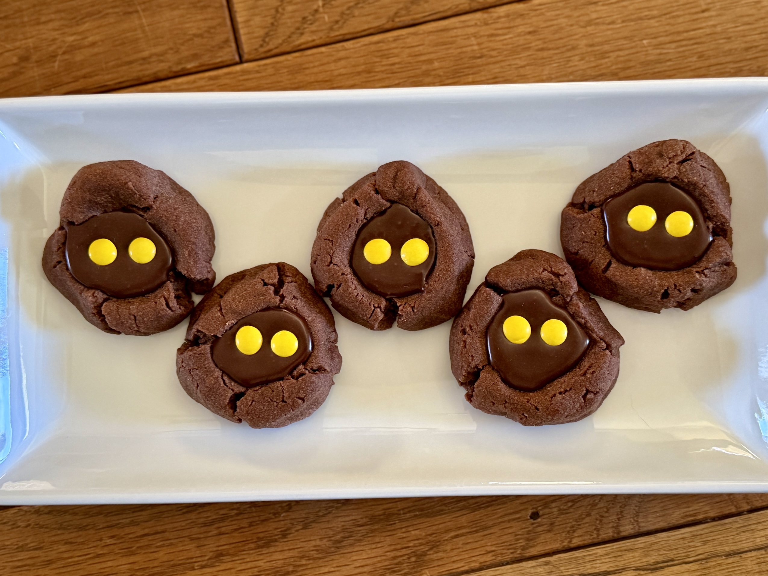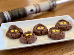 And finally, no Star Wars Day celebration is complete without a sweet treat from the sand-swept streets of Tatooine—Jawa Chocolate Thumbprint Cookies. These rich, chocolatey cookies are as fun to make as they are to eat, with their signature thumbprint centers and playful decorations that give them a little Jawa-inspired personality.