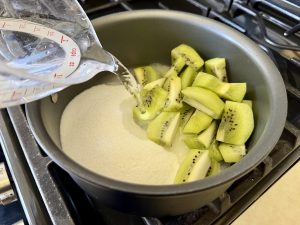 Repeat the same process for the kiwi simple syrup, swapping in fresh kiwi for the cantaloupe. Simmer, strain, and cool until you have a bright, tangy syrup that pairs perfectly with the sweeter melon notes.
