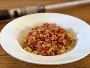 At the center of this dish is a rich, savory sauce made with plant-based meat like Impossible or Beyond. The “rings” come from tender ditalini pasta, giving this dish its signature look and making it easy to scoop, serve, and enjoy. It’s cozy, a little nostalgic, and packed with flavor—ideal for fueling up before a movie marathon or feeding a crowd of hungry rebels.