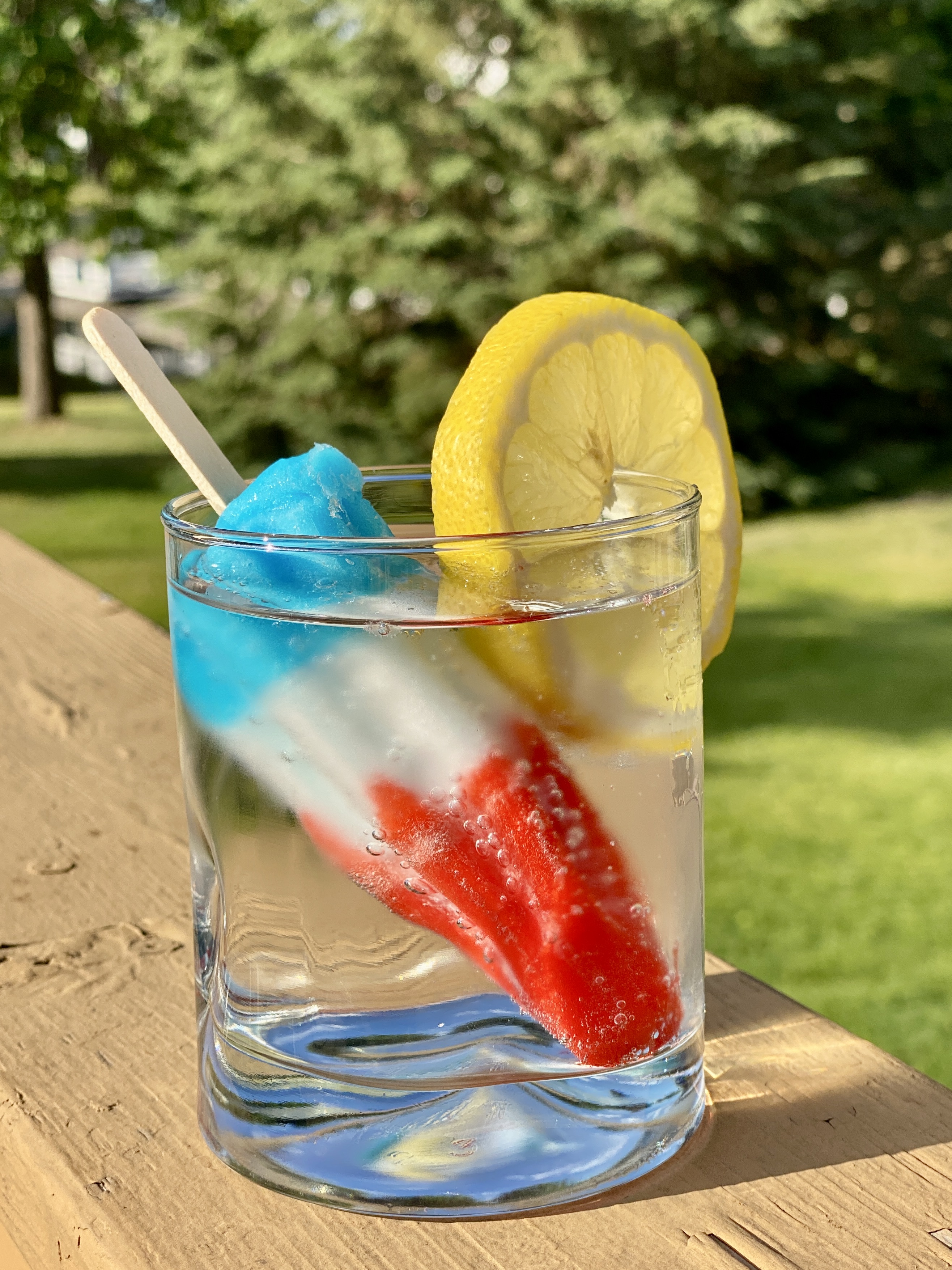 1. Add the vodka (optional) to a lowball glass. Fill ¾ of the way with lemonade. Add a Bomb Pop. Garnish with a lemon slice. Enjoy!