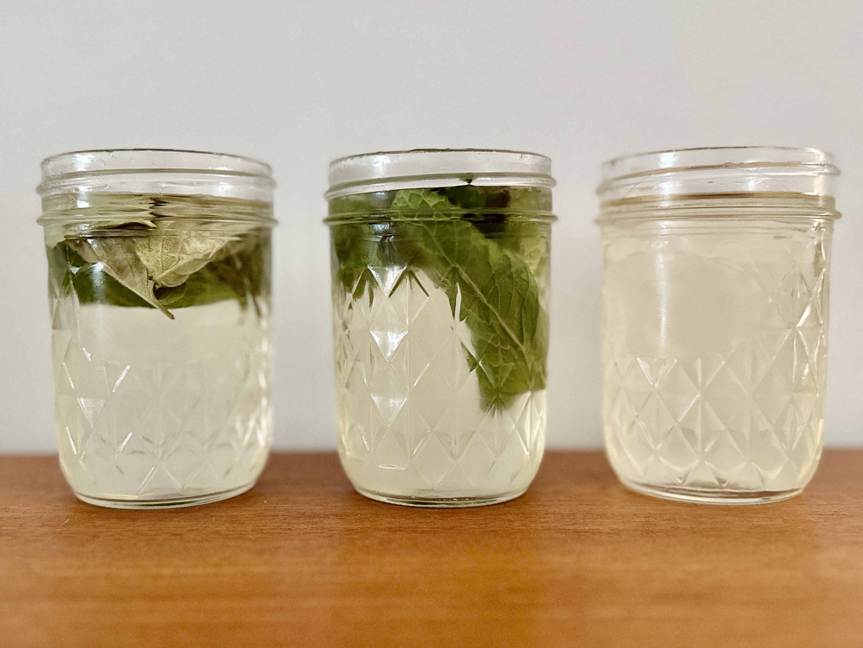 4. Use a ladle to transfer the simple syrup to mason jars. Add flavor infusers of your choosing, optional. Secure the lids and place in the fridge to infuse for at least 30 minutes.