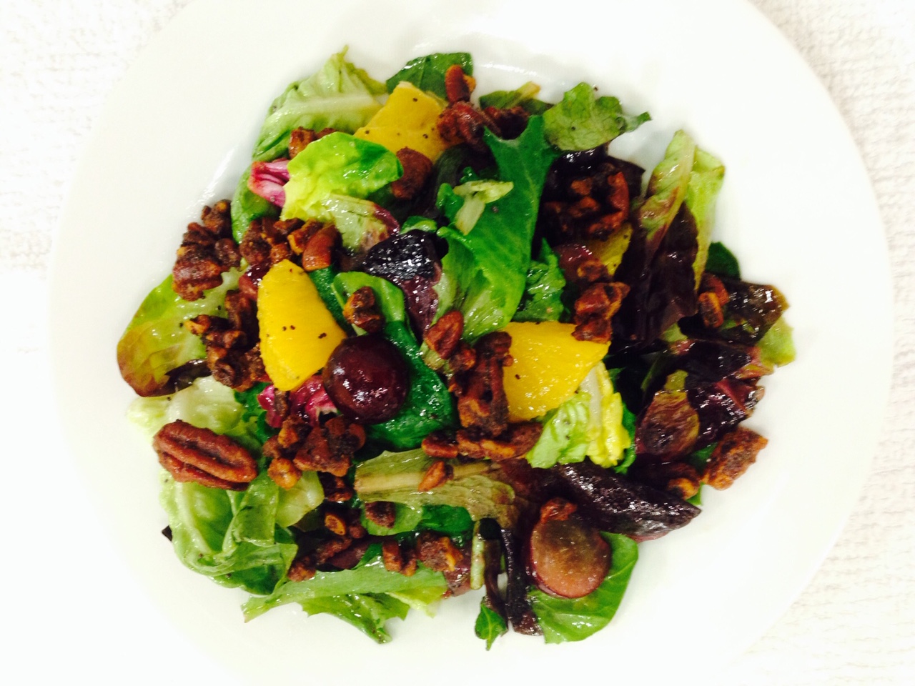 Poppy Seed Dressing and Spicy Pecans, (recipe below)