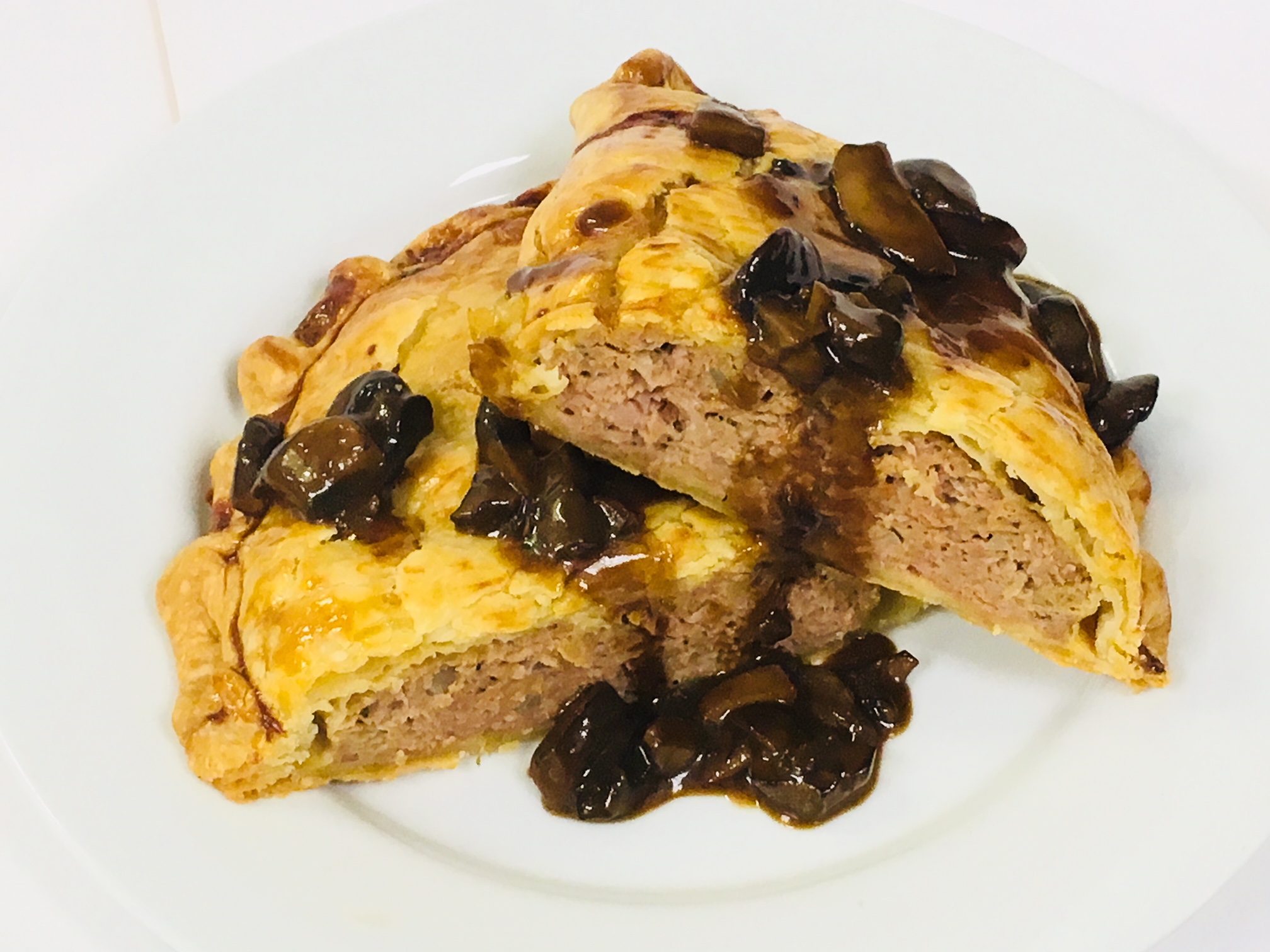 1. Preheat oven to 450 degrees F. In a large bowl, mix meatloaf with all ingredients except pie crusts and egg wash. Divide filling into 4 equal-sized portions.