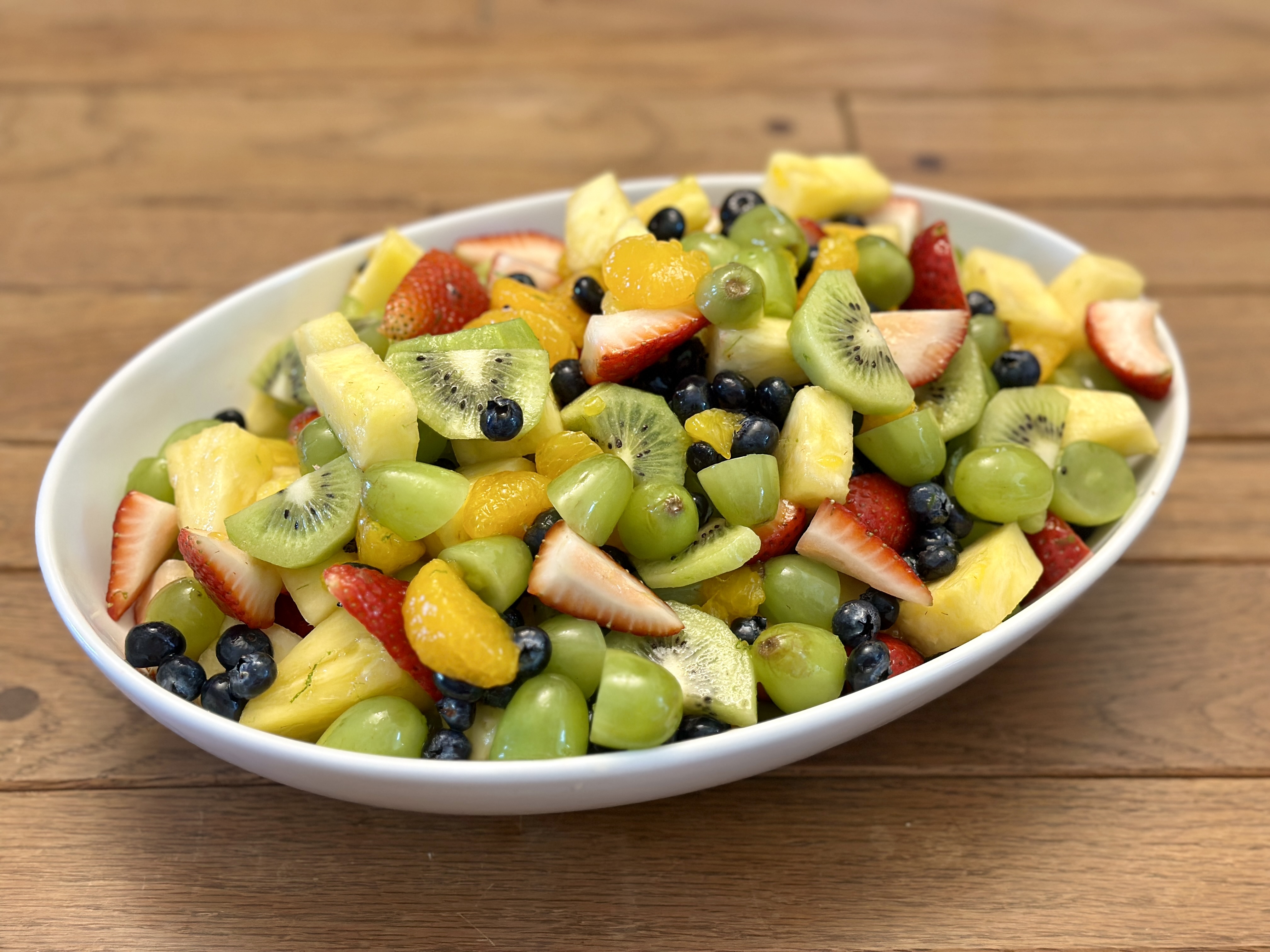 1. Combine all the sliced fruit in a large bowl.