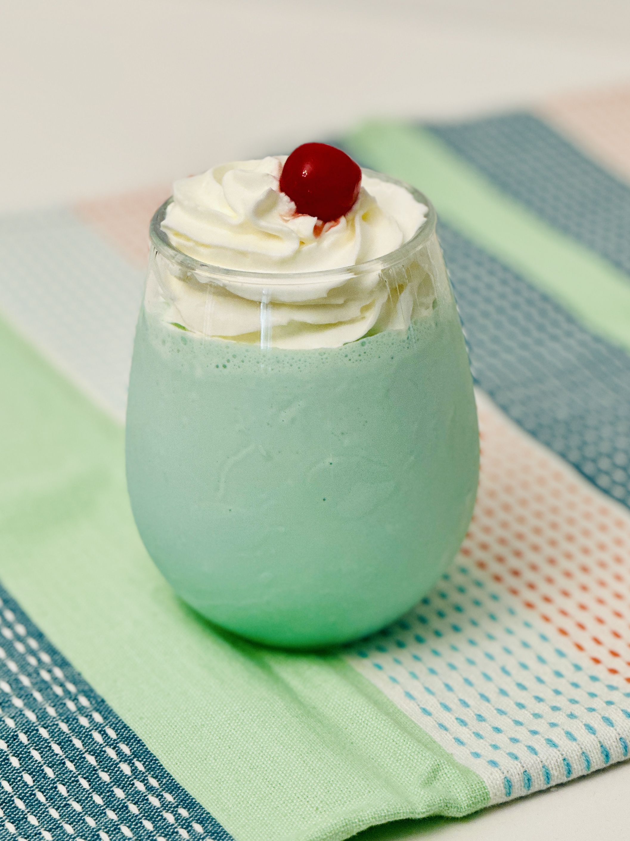 2. Pour into an 8oz glass and top with whipped cream and a cherry.