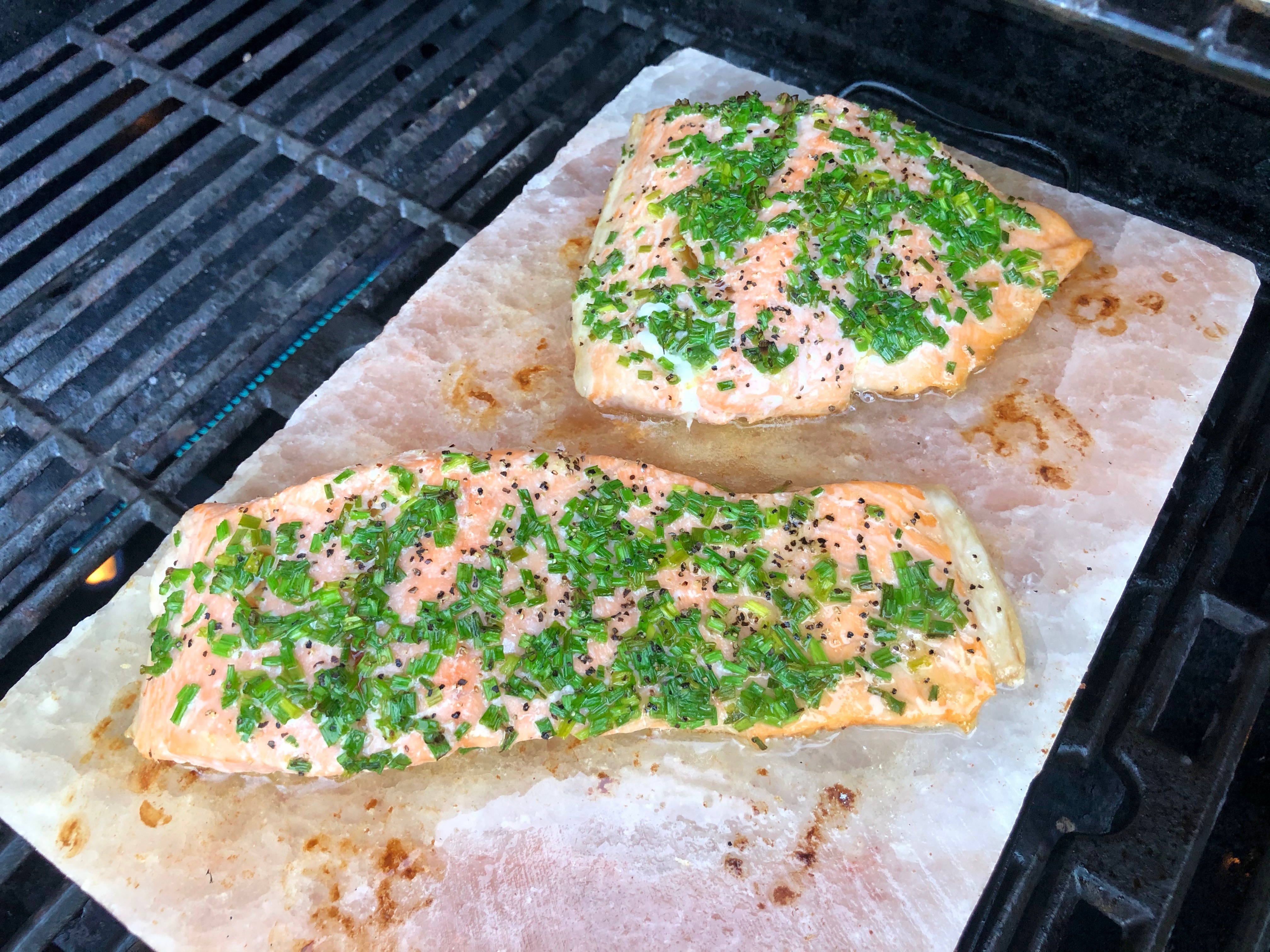 Himalayan Salt Block Salmon with Lemon & Chives
