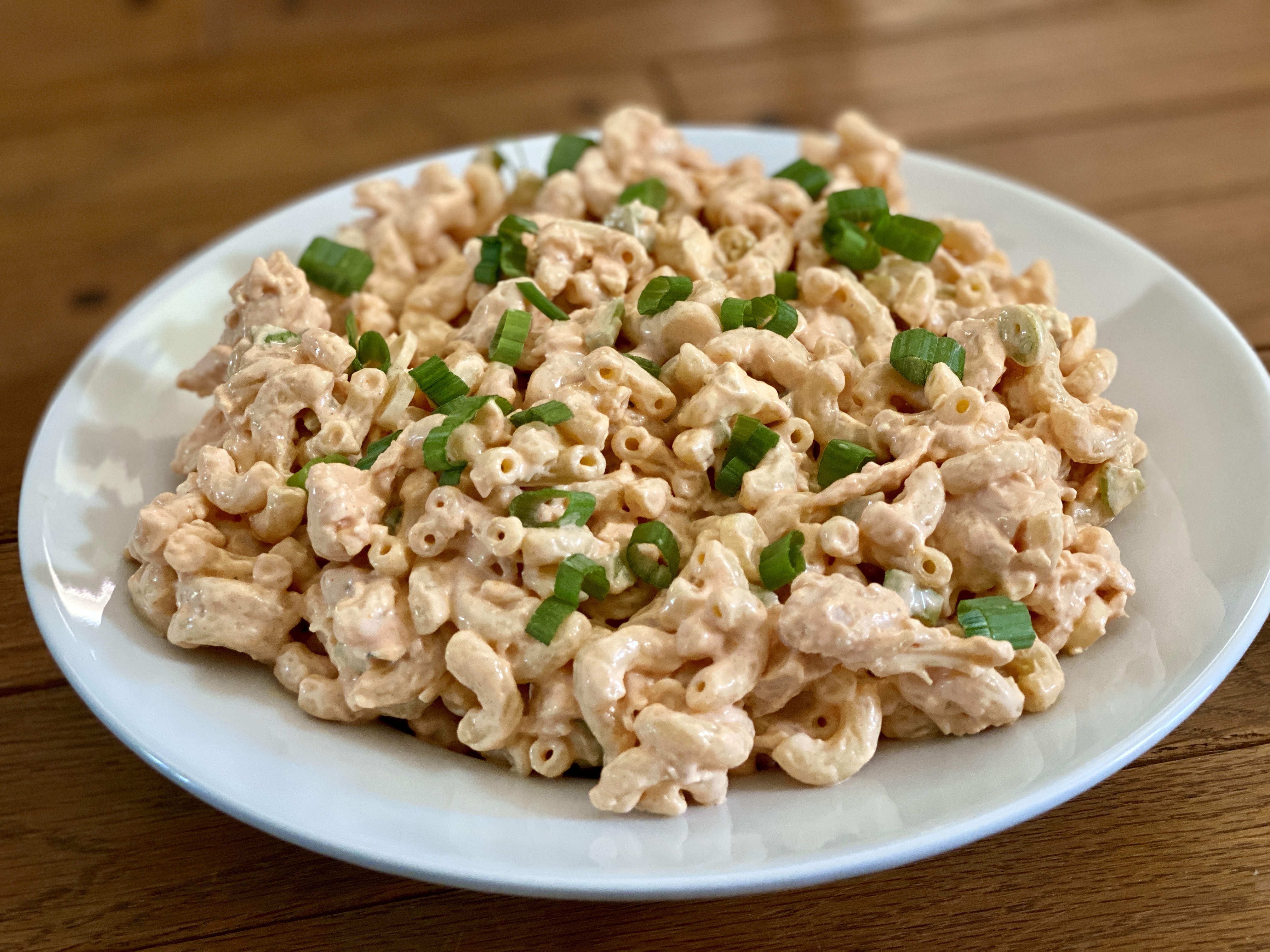 In a large mixing bowl, add the chicken, blue cheese, celery, and most of the green onion. Stir to combine. Add the cooked noodles and stir to combine. Add the sauce and stir until completely coated.