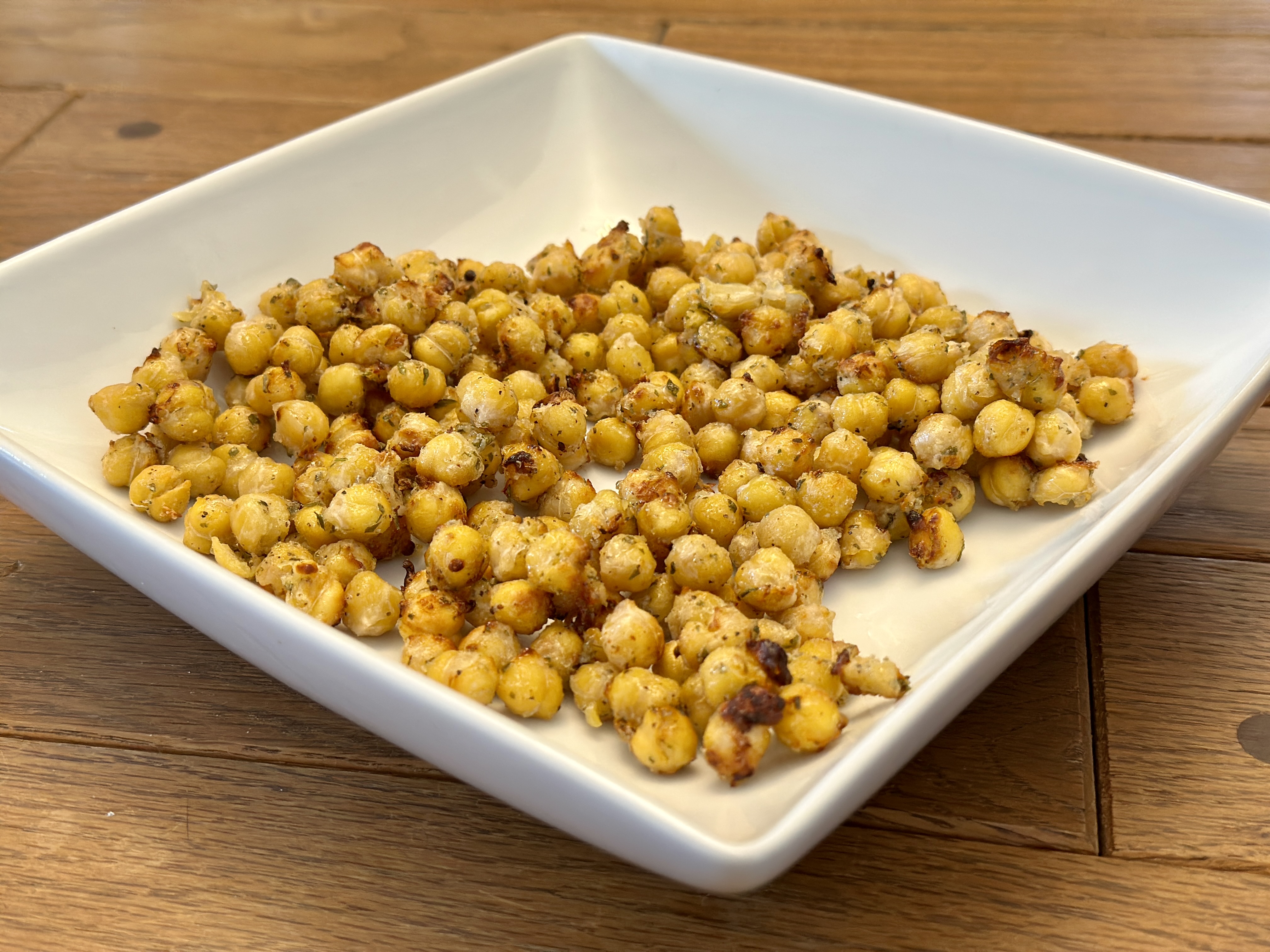 Transfer the chickpeas to a mixing bowl and sprinkle with the remaining seasoning. Toss to coat.
